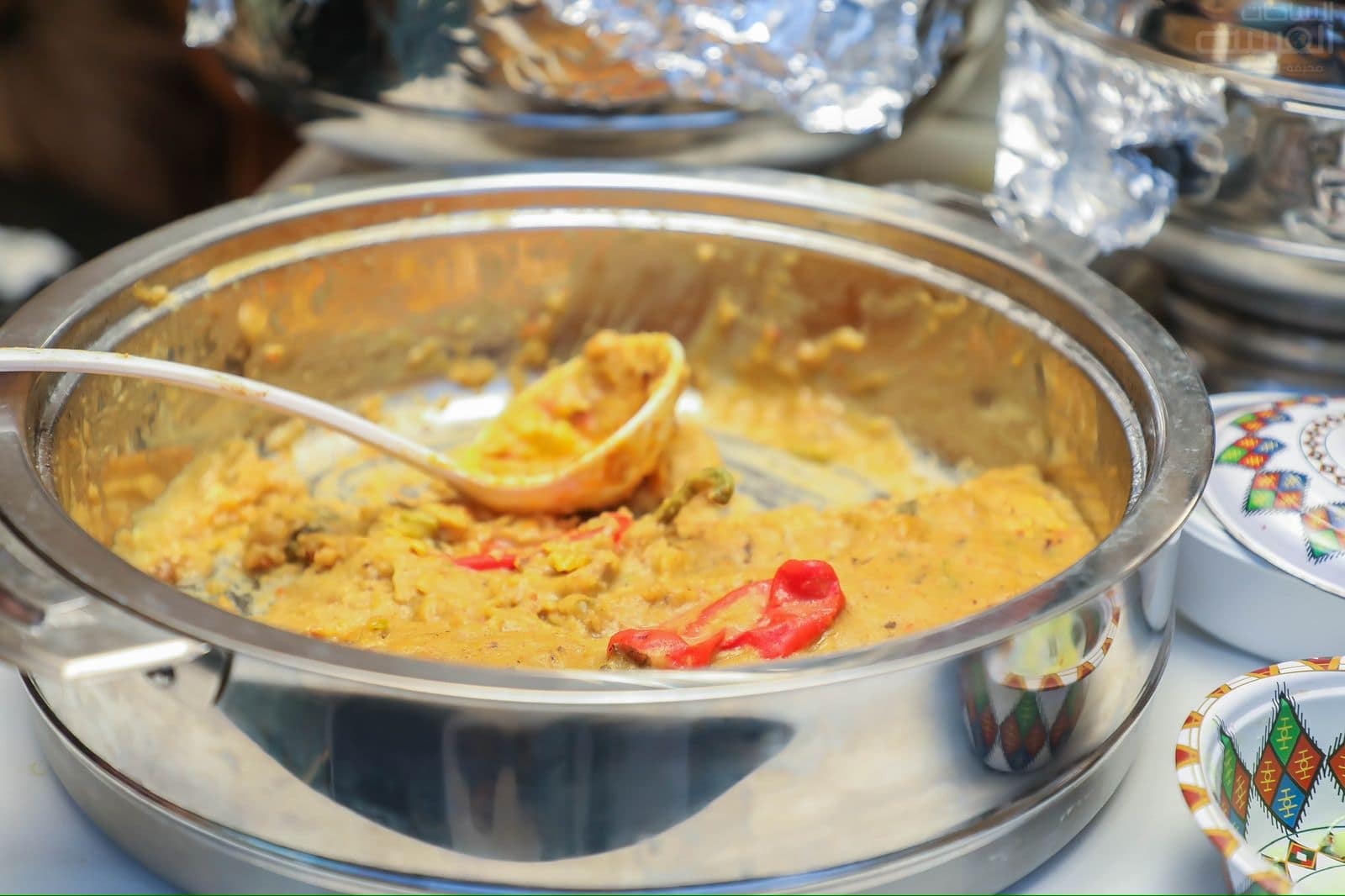 وقدّمت الأسر خلال فعاليات المهرجان، العديد من أصناف المأكولات الشعبية الشهيرة، من أبرزها، الجريش، والحنيني، والمرقوق، وكبسة البرياني، والمحلى، بالإضافة إلى الوجبات الأخرى، مثل الشاورما، والبرغر، والبليلة، و الآيسكريم، وورق العنب، والكنافة، واللقيمات، والبطاطس إلى جانب العديد من أنواع الحلا والعصير، مثل عصير البرتقال، والبسبوسة، وكيكة البرتقال، ومختلف أنواع الشوكولاتة، وغيرها من المأكولات المتنوعة التي نالت إعجاب الزوار وضيوف المهرجان.