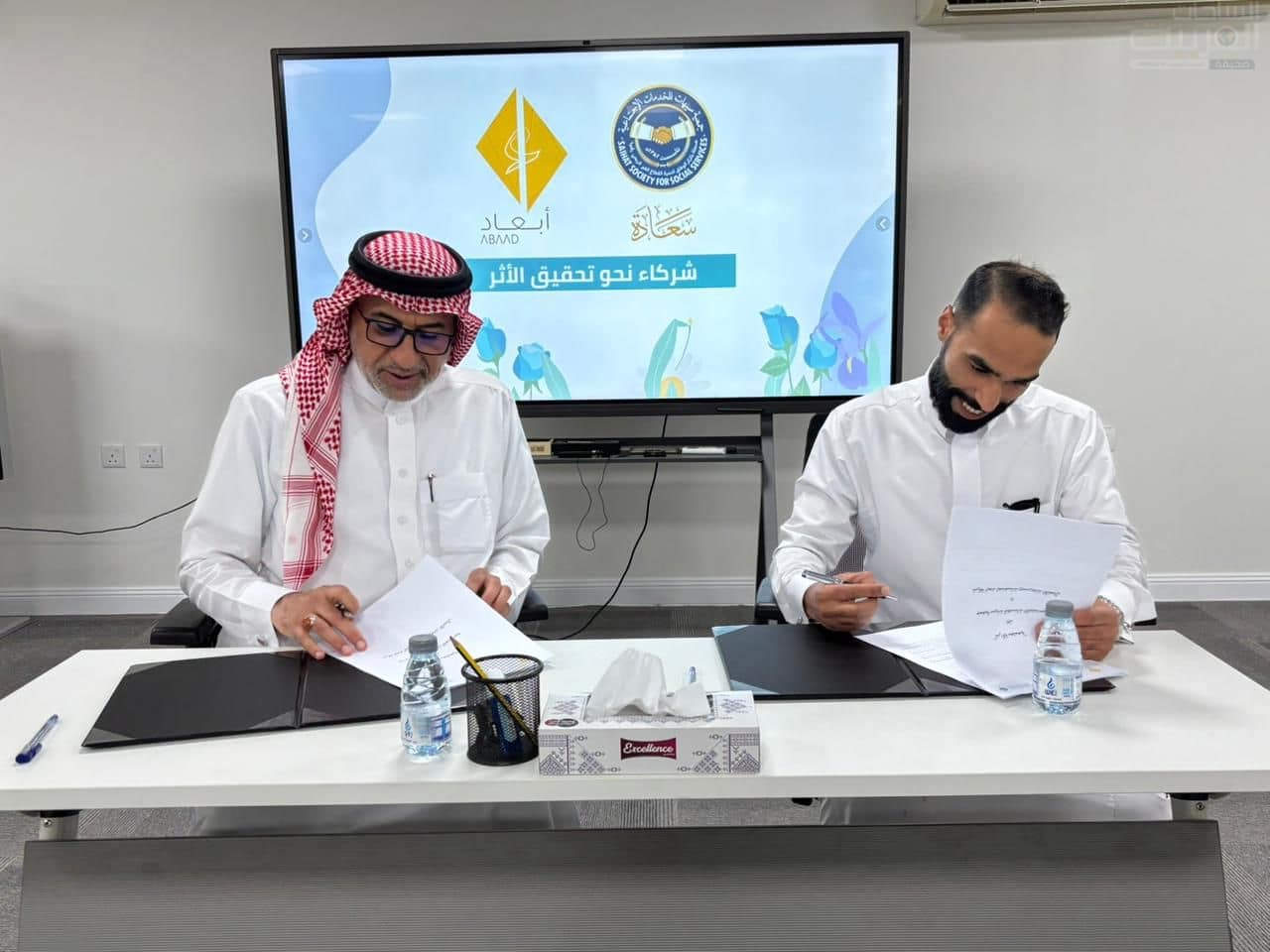 ووقع الاتفاقية كل من الأستاذ عبد الواحد آل يوسف، المدير التنفيذي لسعادة ، والأستاذ عيسى الدليم، مدير عمليات شركة أبعاد لحاضنات ومسرعات الأعمال، مؤكدين على أهمية هذه الشراكة في دعم الأهداف الاستراتيجية للطرفين.