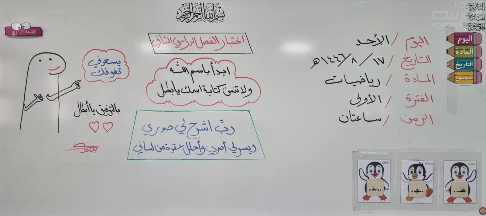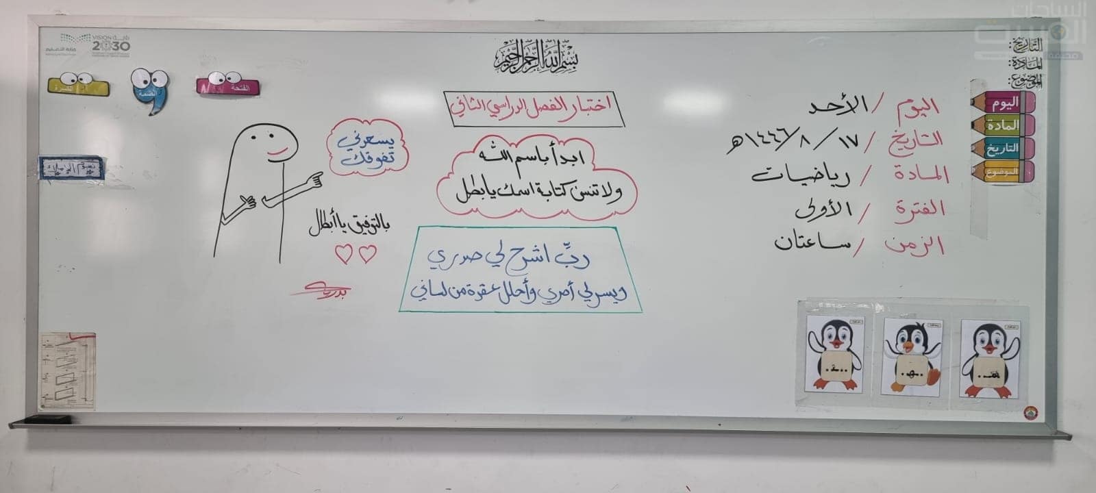 * استكمال احتياجات الفصول الدراسية وتهيئتها بكل ما تحتاجه من تجهيزات وعبارات تحفيزية لعقد الاختبارات باطمئنان وراحة وخوضها بشكل إيجابي.