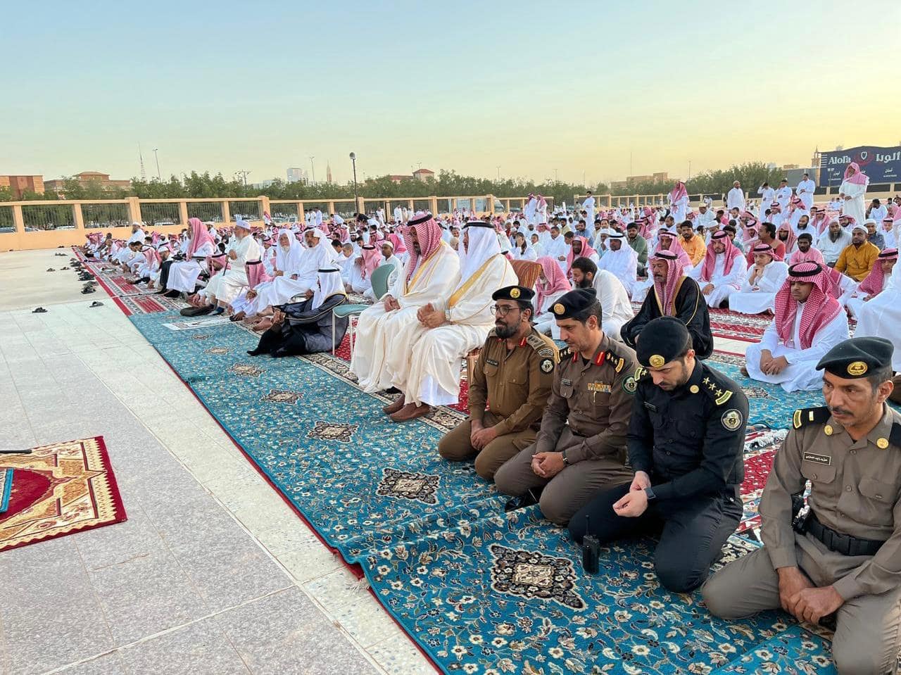 أدّى محافظ المجمعة سلطان بن سعد السديري ، اليوم، صلاة عيد الأضحى المبارك مع جموع المصلين بمصلى العيد الكبير على طريق الملك عبد العزيز بالمجمعة ، وعقب الصلاة استمع سعادته لخطبة العيد الذي ألقاها الشيخ محمد الدهش ، وتطرق فيها إلى أهمية إظهار الفرح والسرور بهذا العيد المبارك، وحمد الله على نعمة التوحيد والسنة والاجتماع والاعتصام بحبل الله المتين الذي نعيشه في بلادنا – أعزها الله . ومن جهة ثانية استقبل سعادته بديوان المحافظة مدراء الجهات الامنية الذين قدموا للسلام وتقديم التهاني والتبريكات بعيد الاضحى المبارك .