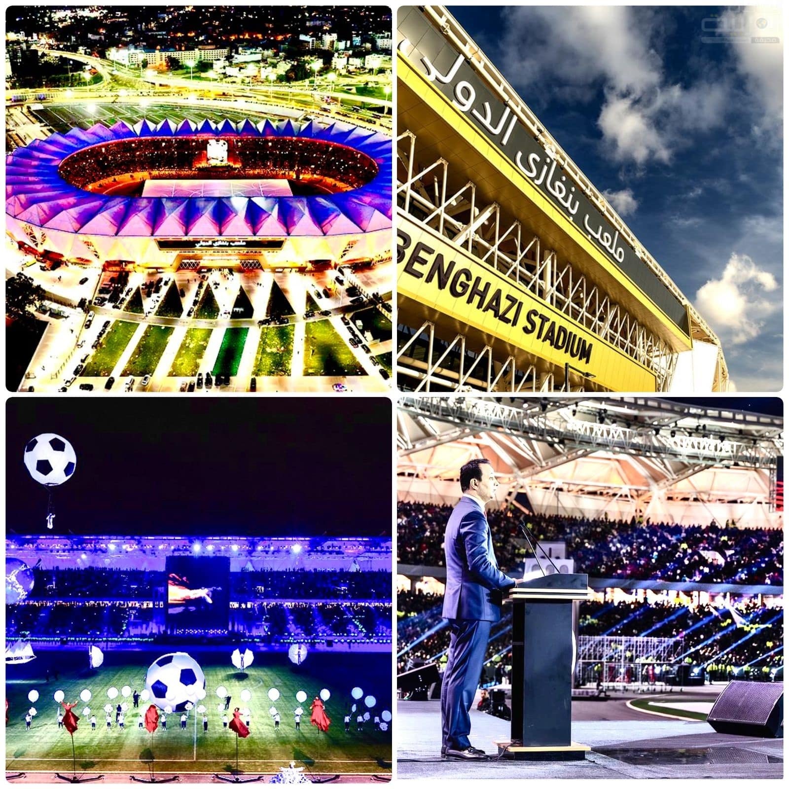 افتتح رئيس صندوق تنمية وإعمار ليبيا، بلقاسم خليفة حفتر، مساء اليوم الخميس، ملعب بنغازي الدولي بعد استكمال أعمال التأهيل والتطوير، ليصبح أحد أكبر المنشآت الرياضية في ليبيا، بطاقة استيعابية تبلغ 41 ألف متفرج.