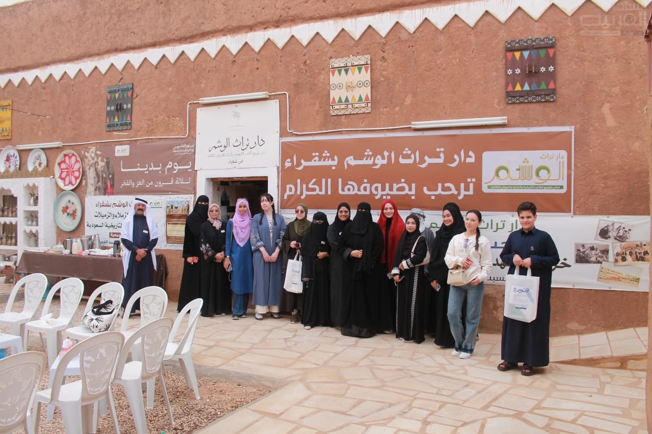 شاركت يوم السبت 23-08-1446هـ الموافق 22-02-2025م جمعية التنمية الأهلية بشقراء التعريف بالثقافة والنشاطات الاجتماعية المحلية من ضمن برنامج المشاركة في أسابيع الخدمة العامة والمناسبات الوطنية بإستضافة الدارسات بمجمع الملك سلمان العالمي للغة العربية من دول عالمية حيث تأتي هذه المبادرة للإنغماس اللغوي والثقافي لتعزيز الوعي وتعميق فهم العادات والتقاليد المرتبطة باللغة ، حيث تم خلال الإستضافة زيارة بعض المعالم التراثية والثقافية ومن ذلك بيت الجميح التراثي، بيت العيسى ، دار تراث الوشم، بيت الرقيب التراثي كما أنها مواقع جذب وخدمات عالية الجودة لما فيها ثقافة تراثية وسياحية حضارية تاريخية ومكانتها الفريدة حيث تركز على التراث والثقافة وتعتبر من ضمن رؤية المملكة 2030 وهي خطة شاملة لتعزيز التنمية المستدامة للملكة العربية السعودية وكما يمثل التراث جزاءً أساسياً من الهوية الوطنية كما خصت الدكتورة أسماء بنت عبدالعزيز الحسين قائدة رحلة الدارسات للغة العربية شكرها لجمعية التنمية الأهلية بشقراء على كرم الاستقبال والاجتماع وحسن التنظيم وروعة الارشاد كل من رئيس مجلس الإدارة إبراهيم الثنيان ونائب رئيس مجلس الإدارة الأستاذ عبدالعزيز البخيتي وبعضوية كل من الأستاذة نورة العبيدي والأستاذة هدى الشويعر والأستاذة هيلة العمار والأستاذة ريم الغبيوي والمسؤول التنفيذي بالجمعية الأستاذ أحمد الغريري.
