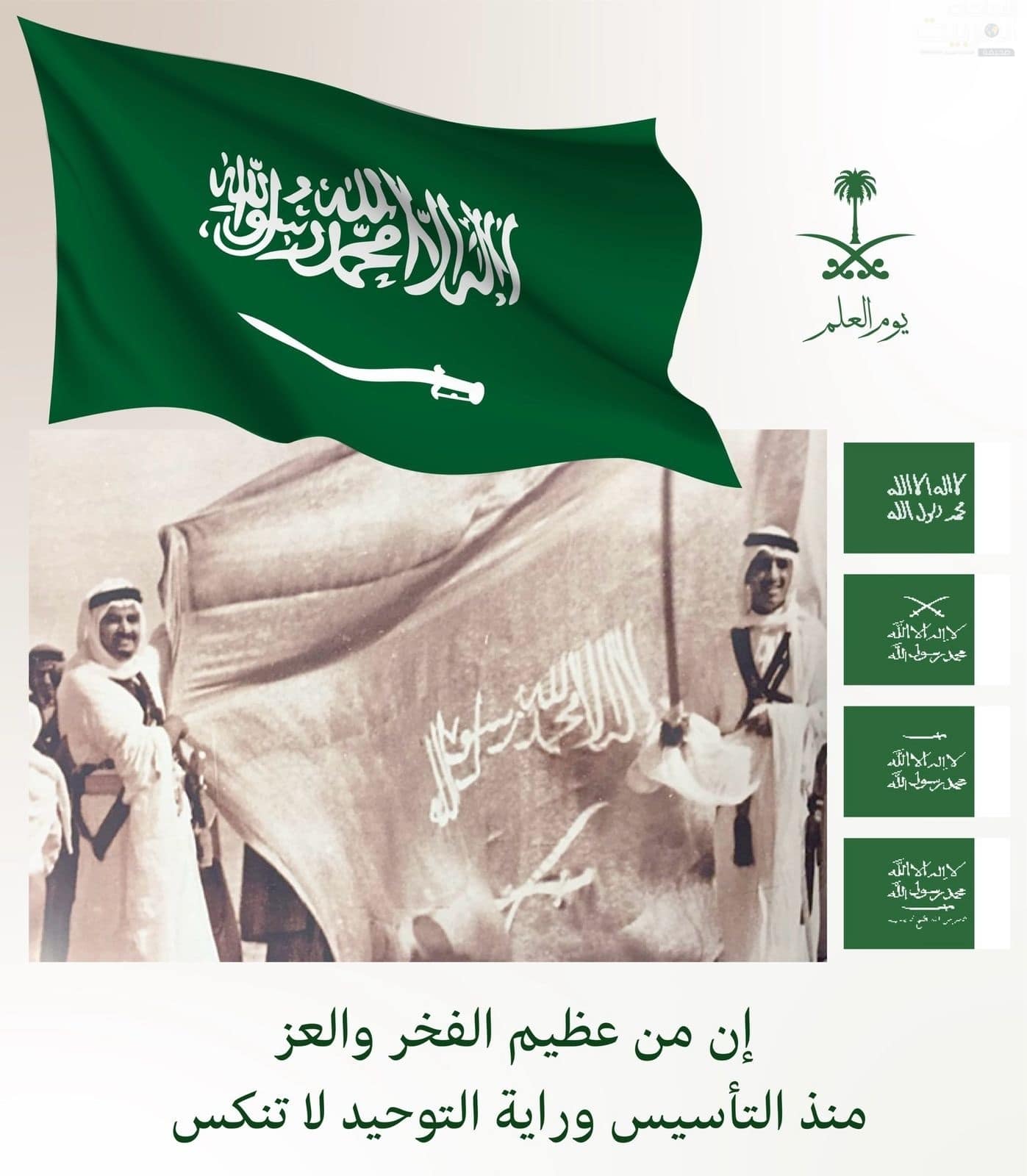 وانطلاقاً من ذلك، صدر الأمر الملكي الكريم من خادم الحرمين الشريفين الملك سلمان بن عبد العزيز آل سعود – حفظه الله – بأن يكون 11 مارس يوماً للعلم والذي نستذكر فيه كل عام فخرنا برمز هويتنا الوطنية، واعتزازنا بالقيم الراسخة التي يحملها في مضامينه، والتي ترتكز عليها المملكة العربية السعودية.