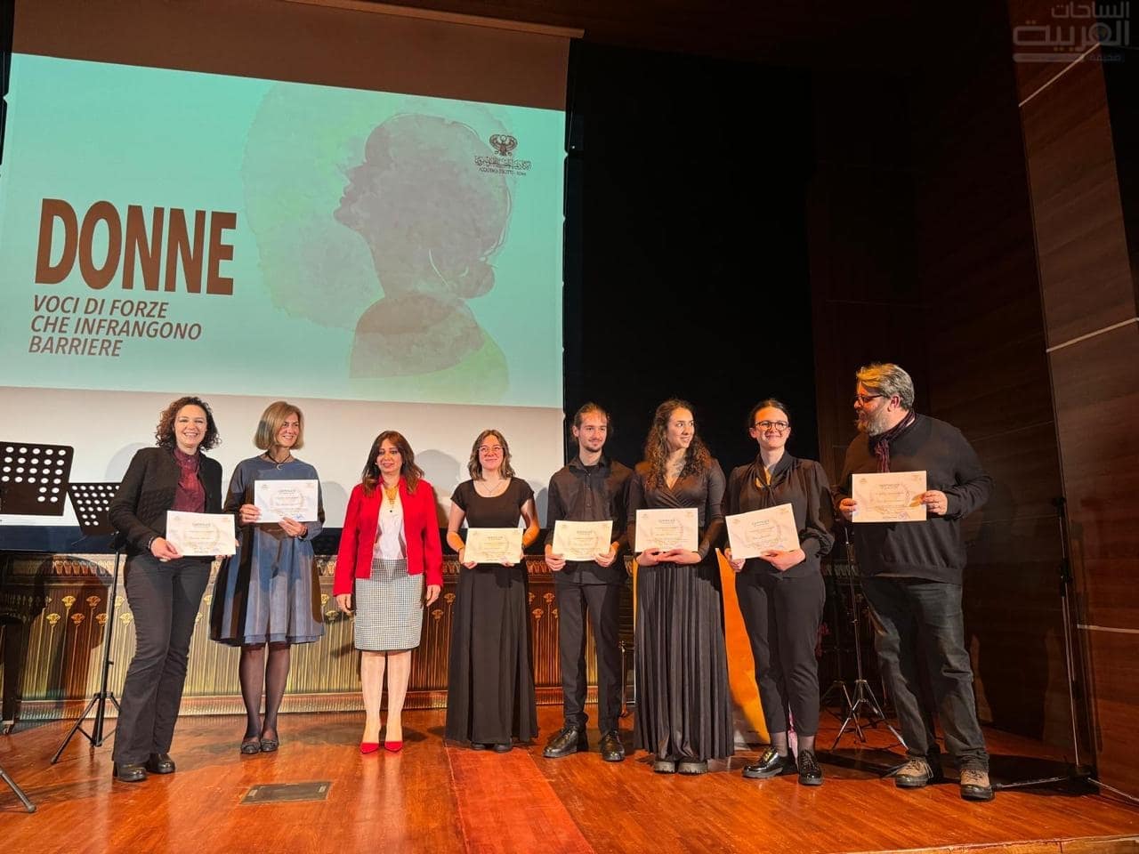 فى إطار الاحتفالات بيوم المرأة العالمى أقامت الأكاديمية المصرية للفنون بروما برئاسة الأستاذة الدكتورة رانيا يحيى فعالية ثقافية فنية بمشاركة كل من الأستاذة الإيطالية فالنتينا سجاريا روسسى أستاذة اللغة العربية والأدب بجامعة تورفرجاتا بروما، والدكتورة ايلاريا سفورتزا الشاعرة والمتخصصة فى الآثار الكلاسيكية بنفس الجامعة.