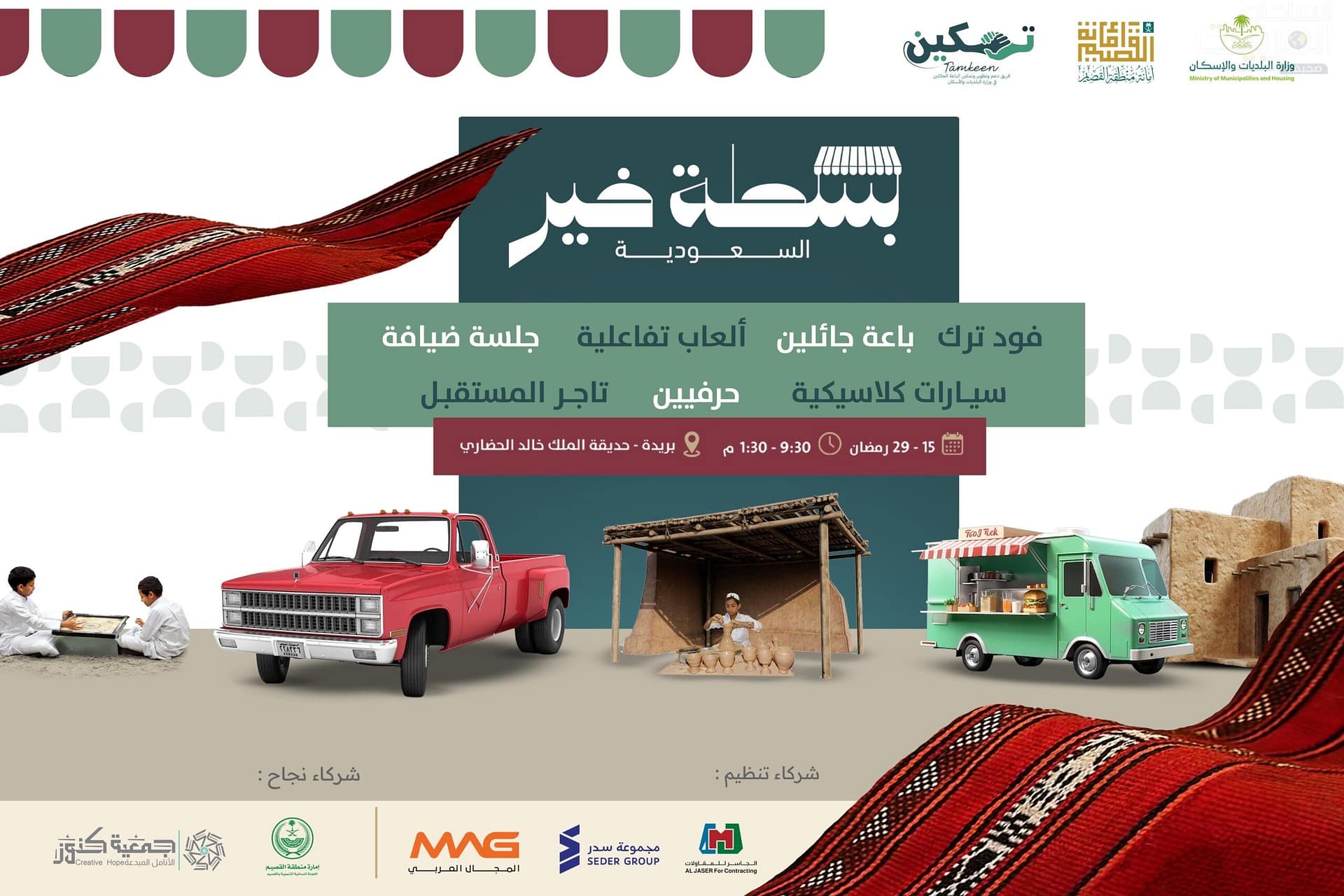 يسر أمانة منطقة القصيم أن تطلق فعالية “بسطة خير السعودية”، إحدى المبادرات المتميزة التي تأتي في إطار جهود فريق دعم وتطوير الباعة الجائلين في وزارة البلديات والإسكان، بهدف تعزيز النشاط الاقتصادي والاجتماعي لهم، وتمكينهم من تقديم منتجاتهم وخدماتهم في بيئة منظمة وحيوية.
