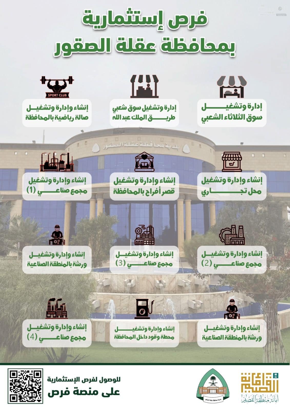 طرحت أمانة منطقة القصيم، ممثلةً في بلدية محافظة عقلة الصقور،12 فرص استثمارية أمام منشآت القطاع الخاص، وتتمثل في مجال الأنشطة التجارية والصناعية ،عبر بوابة الاستثمار البلدي “فرص”، في إطار جهود البلدية لتعزيز الاستثمار المحلي، بما يواكب أهداف التنمية المستدامة ورؤية المملكة 2030 في دعم القطاع التجاري و الصناعي وتحفيز الشراكة مع القطاع الخاص، وأكدت البلدية أن آخر موعد لشراء الكراسة وتاريخ فتح المظاريف 27 مايو 2025م، داعيةً المستثمرين الراغبين في التنافس الاطلاع على الفرصة، وتفاصيل المنافسة من خلال تطبيق الاستثمار البلدي (فرص)