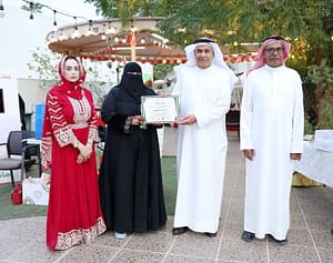 وفي ختام الحفل تم تكريم سيدة الأعمال رضوه الكريان و الاستاذ خليفة الكريان من قبل جمعية المرأه وتنمية الاجتماعية بدولة البحرين