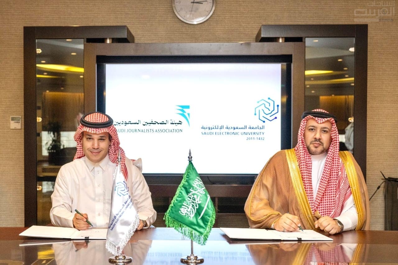 ومثل الجانبين في توقيع الاتفاقية في مقر الجامعة بالرياض كل من رئيس الجامعة السعودية الإلكترونية الدكتور محمد بن يحيى مرضي، ورئيس مجلس إدارة هيئة الصحفيين السعوديين عضوان الأحمري.