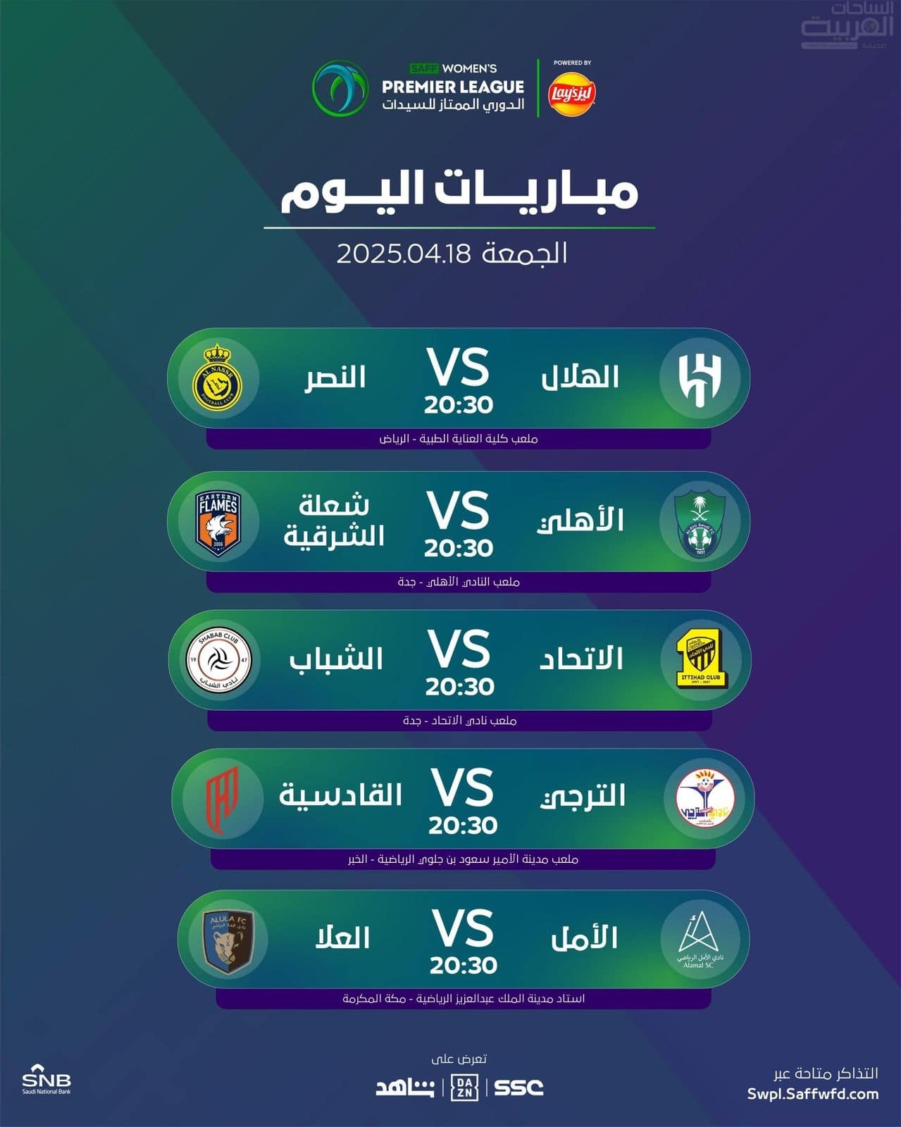 انطلقت اليوم منافسات الجولة السابعة عشر من الدوري الممتاز للسيدات بإقامة خمس مباريات في أربع مناطق مختلفة، كان أبرزها ديربي العاصمة بين الهلال والنصر، والذي شهد إثارة كبيرة وانتهى بفوز الهلال بنتيجة 3-2.
