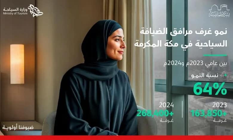 وزارة السياحة تعلن عن تجاوز عدد الغرف المرخصة في مكة المكرمة 268 ألفًا بنسبة نمو 64%