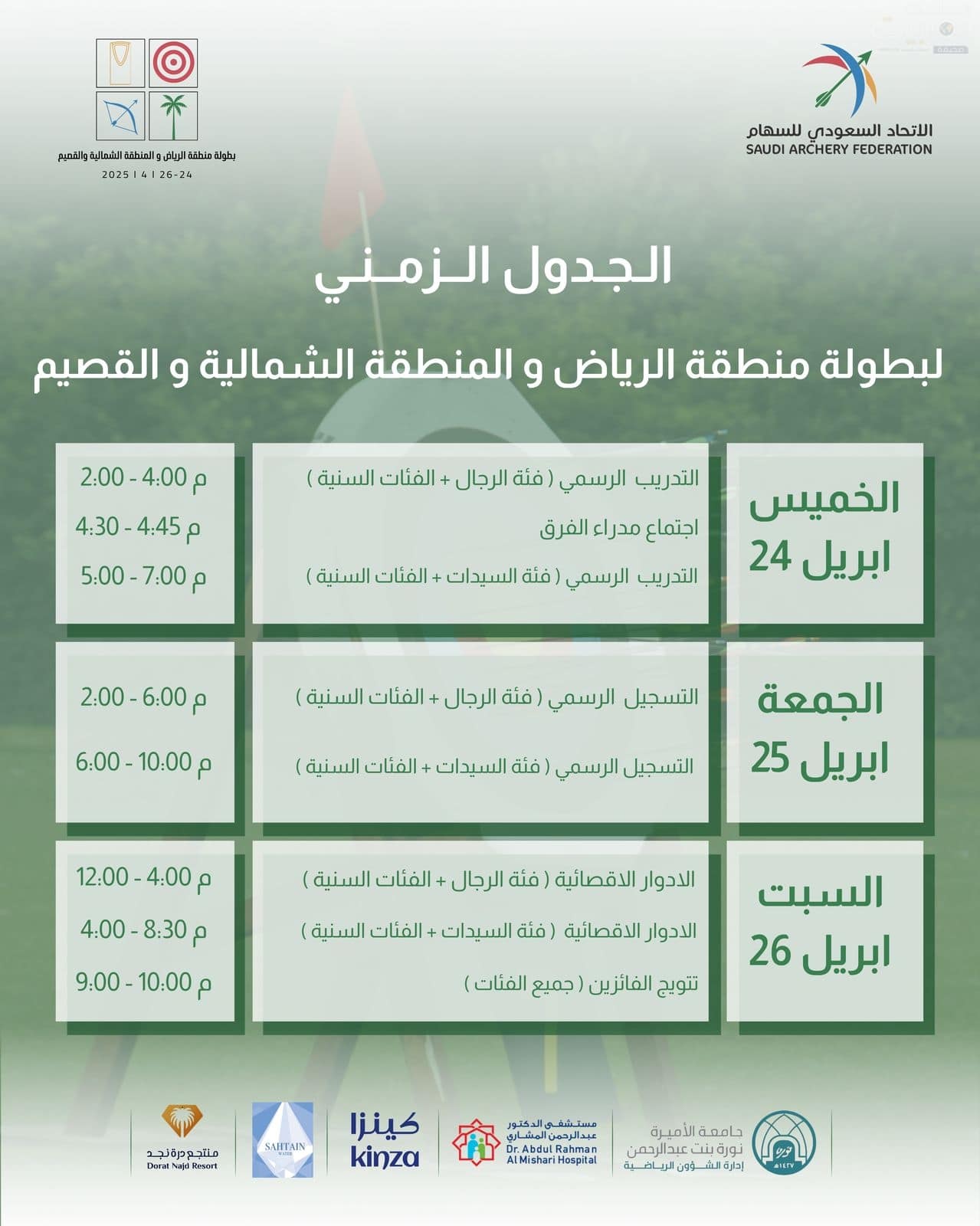 بأكثر من 150 رامٍ ورامية، ووسط حضور جماهيري ورياضي واعد، أطلق الاتحاد السعودي للسهام شارة البداية لبطولة منطقة الرياض والمنطقة الشمالية والقصيم، التي تحتضنها جامعة الأميرة نورة بنت عبد الرحمن خلال الفترة من 24 إلى 26 أبريل 2025، بمشاركة أكثر من 20 ناديًا يمثلون نخبة من المواهب والنجوم في هذه الرياضة المتصاعدة.