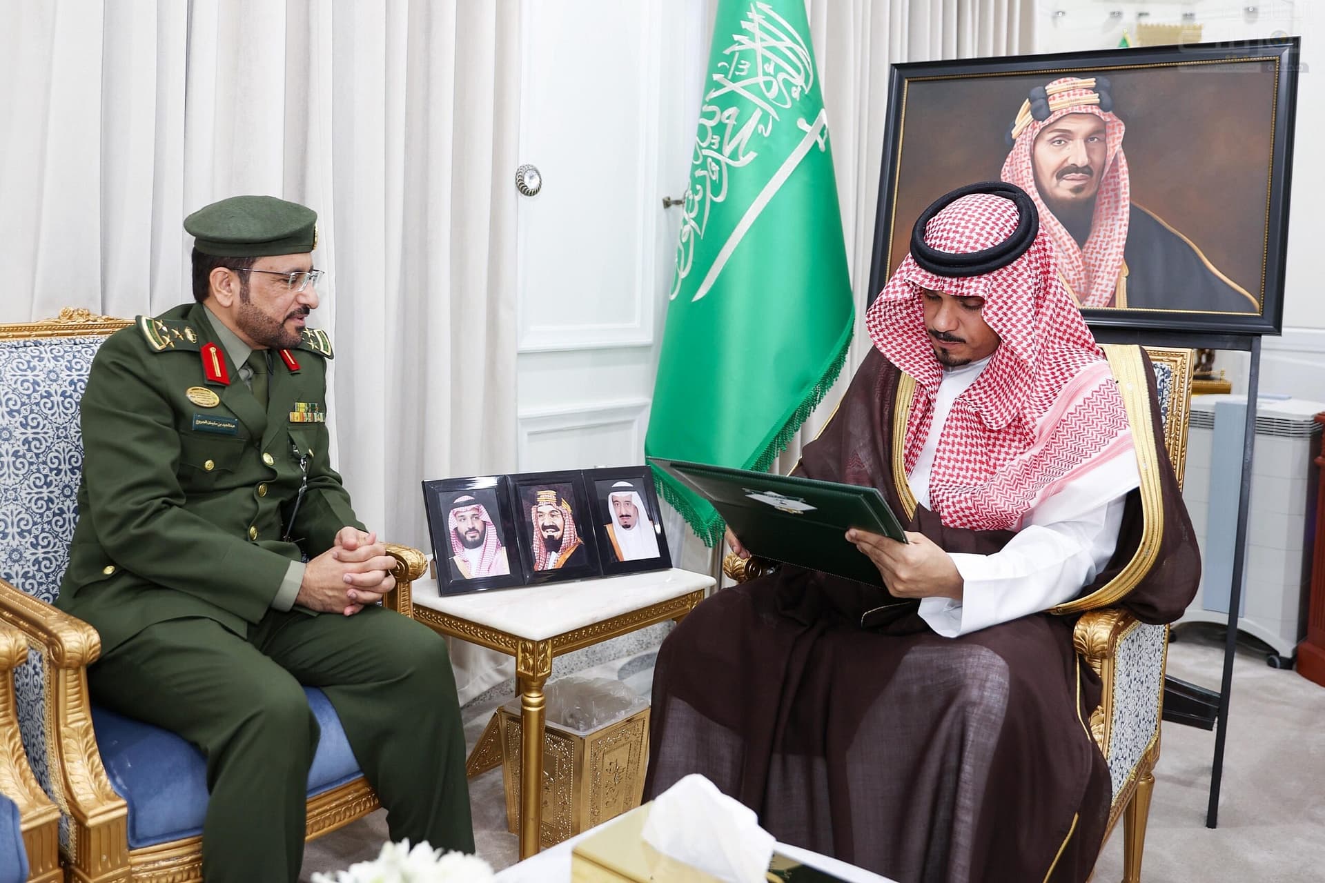 جاء ذلك خلال لقاء سموه في مكتبه اليوم، مدير إدارة جوازات المنطقة العميد عبدالمجيد بن سليمان الجربوع، الذي قدم لسموه إيجازًا عن استعدادات مشاركة جوازات المنطقة في استقبال الحجاج القادمين من الجمهورية اليمنية، عبر منفذ الوديعة الحدودي.