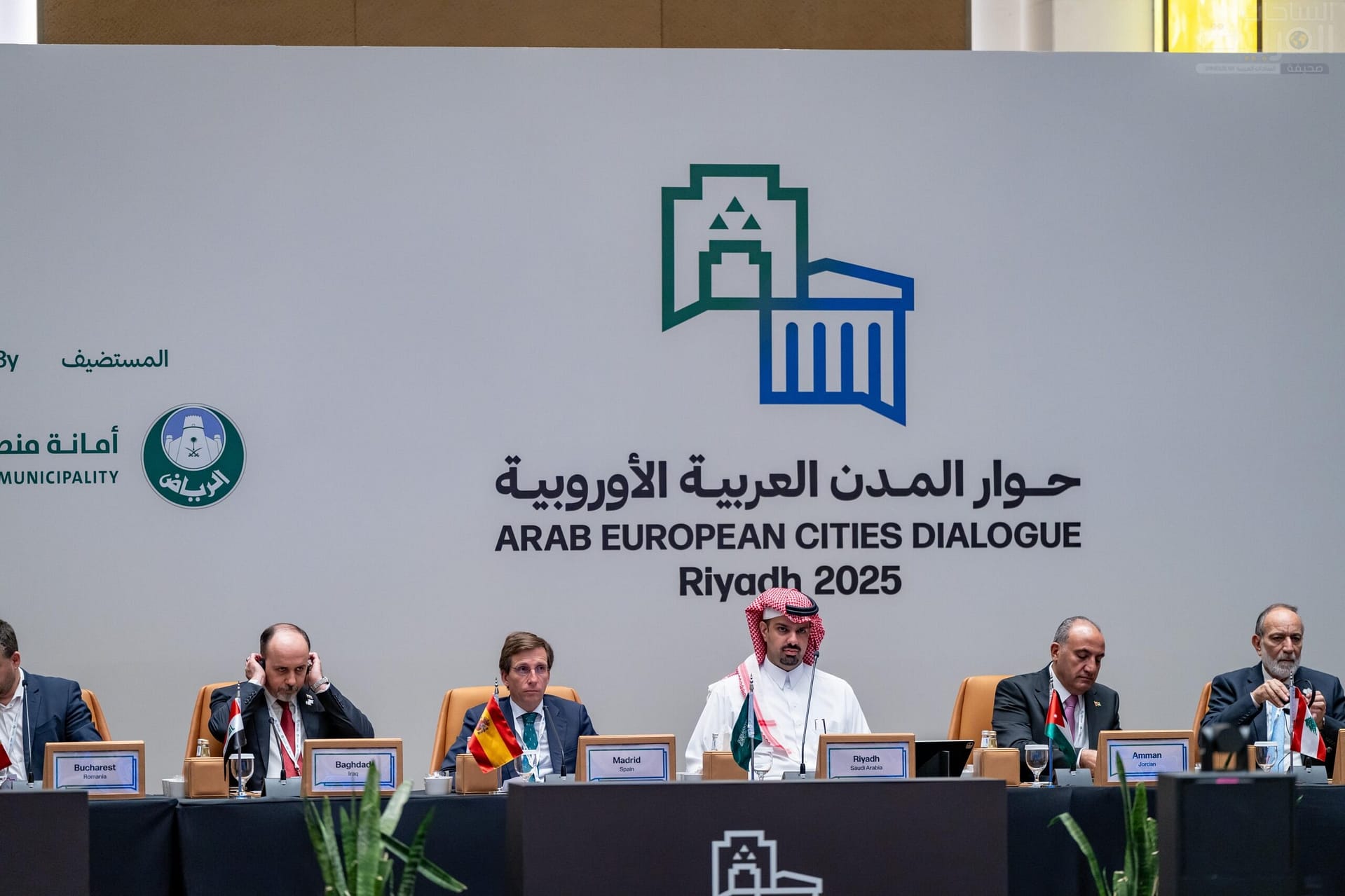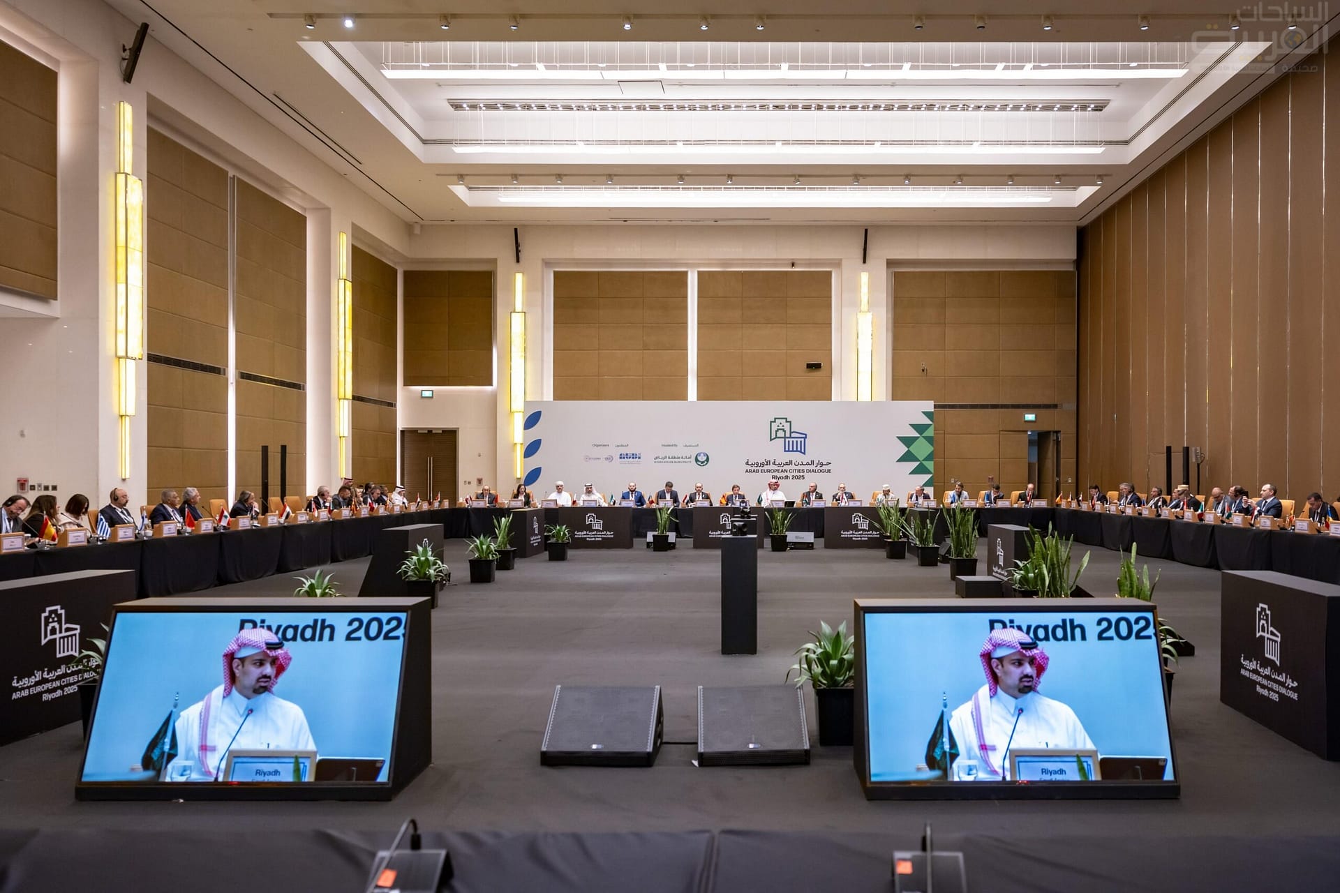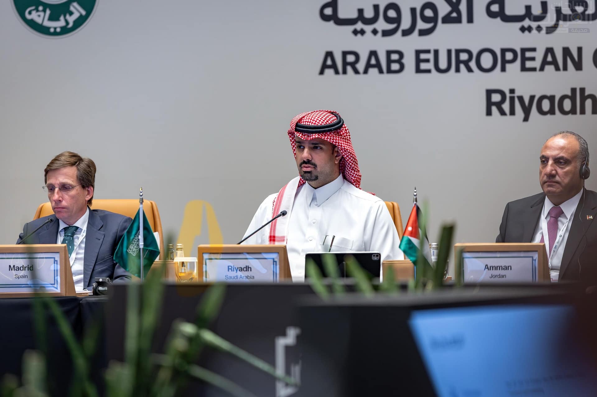 رأس صاحب السمو الأمير الدكتور فيصل بن عبدالعزيز بن عيّاف، أمين منطقة الرياض ورئيس المعهد العربي لإنماء المدن، جلسة “ملتقى قادة المدن” ضمن أعمال منتدى حوار المدن العربية والأوروبية الذي تستضيفه العاصمة الرياض، بمشاركة اكثر من 100 من الأمناء ورؤساء الوفود من المدن العربية والأوروبية. وشهدت الجلسة اختيار العاصمة الإسبانية مدريد لاستضافة النسخة الثانية من المنتدى في عام 2027، تأكيدًا على التزام المشاركين باستمرارية المنتدى وتوسيع أثره على المستويين الإقليمي والدولي.