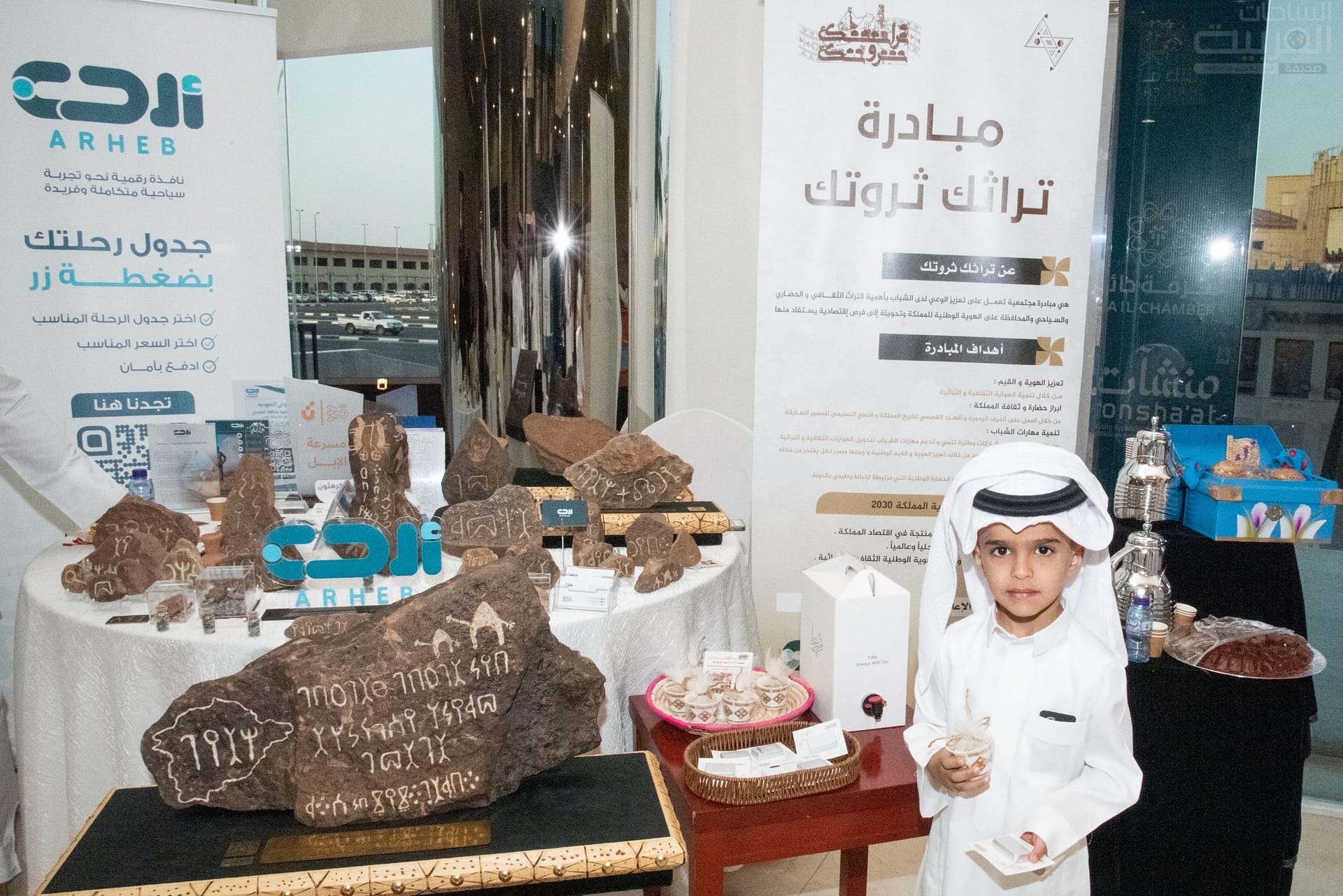 ومن ضمن هذه المشاركات كان لمبادرة “تراثك ثروتك” مشاركة بركن تعريفي بالشراكة مع شركة أرحب والنقوش الصخرية ، وهي مبادرة مجتمعية تعمل على تعزيز الوعي لدى الشباب بأهمية التراث الثقافي والحضاري والسياحي والمحافظة على الهوية الوطنية للمملكة وتحويل هواياتهم وحرفهم اليدوية إلى فرص إقتصادية يستفاد منها محلياً وعالمياً .