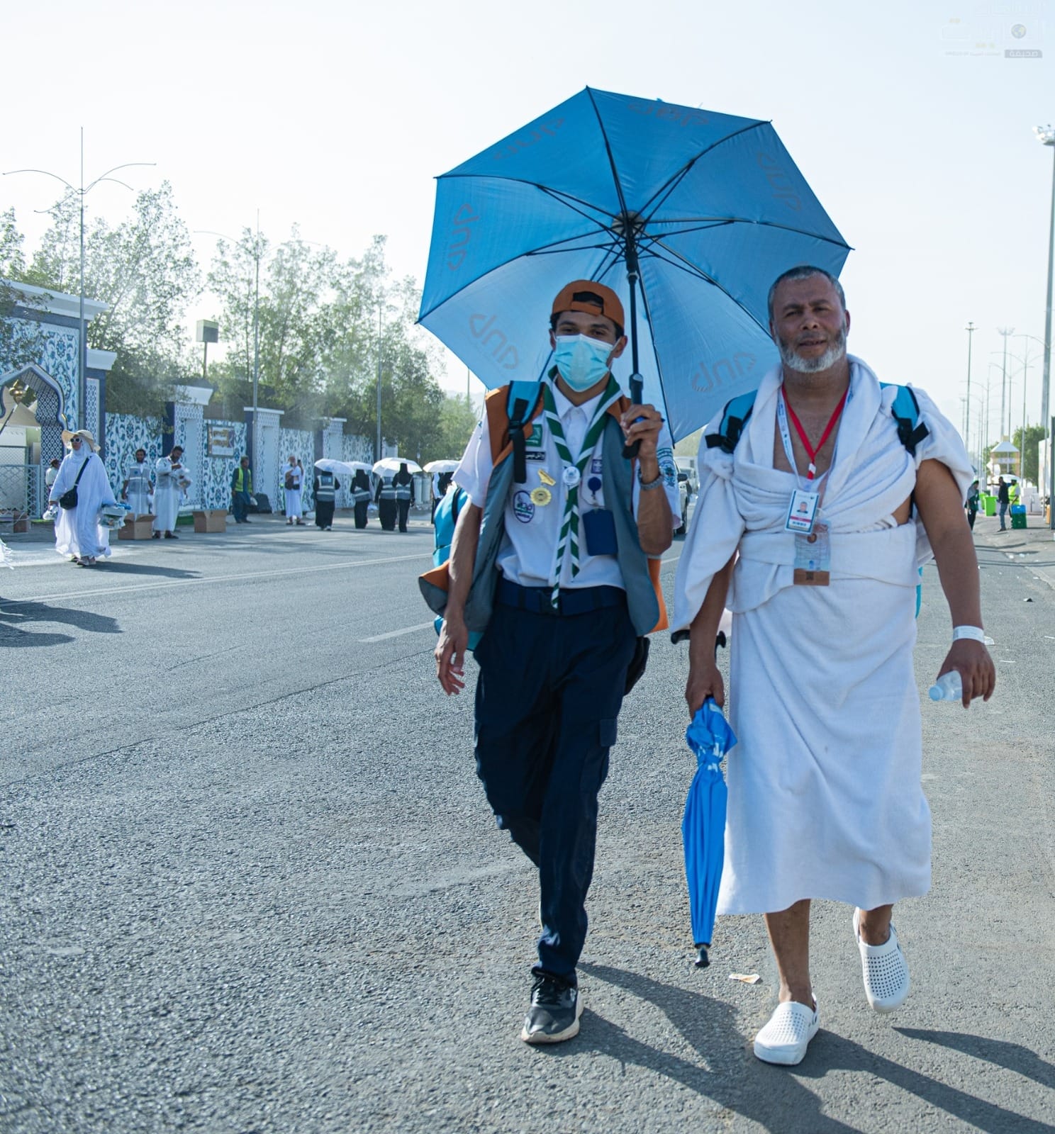 في أوج الظهيرة على صعيد عرفات، وتحت شمس لا ترحم، كان مشهد الرحمة يمشي على قدمين… يرتدي قبعة كشفية، ويحمل مظلة تظلل حاجاً مسناً، أو يسند ذراع حاج أنهكه التعب، أو يدفع عربة تحمل أماً مُسنة تلتمع دموعها امتناناً.