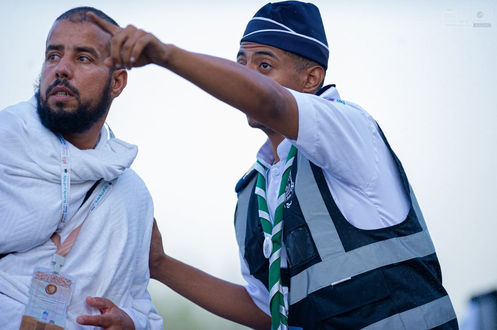هم فِتية الكشافة من معسكرات الخدمة العامة التي تقيمها جمعية الكشافة العربية السعودية، ممن نذروا يومهم لخدمة ضيوف الرحمن، وغرسوا أعظم المعاني الإنسانية في أرض الطهر.
