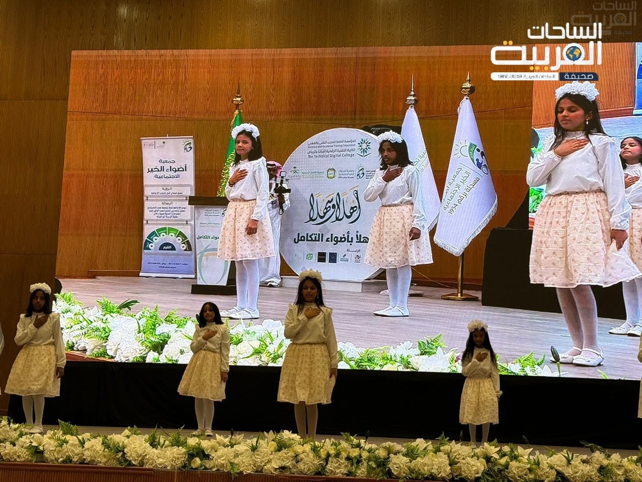 حفل تكريم المتطوعين والجهات المشاركة في خدمة ضيوف الرحمن لموسم حج 1446هـ، بتنظيم من جمعية أضواء الخير وجمعية تكامل الصحية، على خشبة مسرح الكلية التقنية الرقمية للبنات بالرياض.
