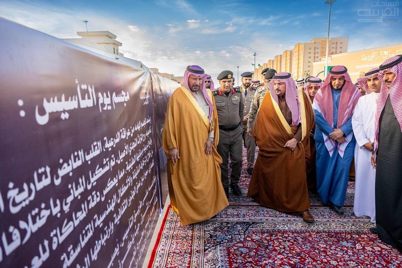 دشّن صاحب السمو الملكي الأمير الدكتور فيصل بن مشعل بن سعود بن عبد العزيز أمير منطقة القصيم، اليوم السبت 22 فبراير 2025م، مجسم يوم التأسيس، وذلك تزامناً مع الاحتفاء بيوم التأسيس السعودي، وسط أجواء وطنية مميزة شهدت أداء العرضة السعودية، التي عكست روح الفخر والانتماء لتاريخ المملكة العريق ، واستمع أمير القصيم الى شرح موجز من أمين القصيم المهندس محمد بن مبارك المجلي ، عن المجسم حيث يستمد المجسم إلهامه من عراقة الدرعية، القلب النابض لتاريخ المملكة العربية السعودية، ويجسد بتفاصيله روح التراث النجدي الأصيل، وقد تم تشكيل المباني بشكل متناغم مع واقع الدرعية و مبانيها الطينية، مما يعكس دقة المحاكاة للعمارة التقليدية التي تتميز بها المنطقة، من خلال الزخارف الدقيقة والأشكال الهندسية المتناسقة، ويعكس التصميم روعة التراث المعماري، معبّرًا عن عمق الجذور الثقافية وارتباطها الوثيق بهوية المملكة، وبوقوعه على طريق التأسيس في مدينة بريدة، يُصبح المجسم رمزاً حياً يربط بين الماضي العريق والحاضر المشرق، كما يمتد المجسم على مساحة 265 م2، ويتفاوت ارتفاع المجسم بين متر إلى خمسة أمتار، هذا العمل ليس مجرد تجسيد معماري، بل احتفاءٌ بتراث عريق ورمزية تاريخية تروي قصة الانطلاقة الأولى لدولة عظيمة، وتجسد قيم التأسيس والوحدة التي قامت عليها المملكة.