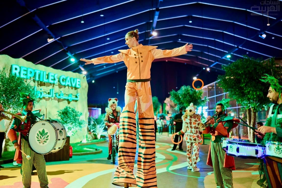 كما تقدم المنطقة برامج ترفيهية متكاملة في أجواء مكيفة، تشمل مسرح العروض، ورش عمل، وجلسات تفاعلية، وتجارب فنية، مثل التلوين وألعاب المهارة، بالإضافة إلى مناطق مخصصة لإطعام الحيوانات وتبنيها، ومرافق تسوق ومطاعم، فضلًا عن تجربة المشتل ومسبح الكور وعروض حية تبهج الزوار.