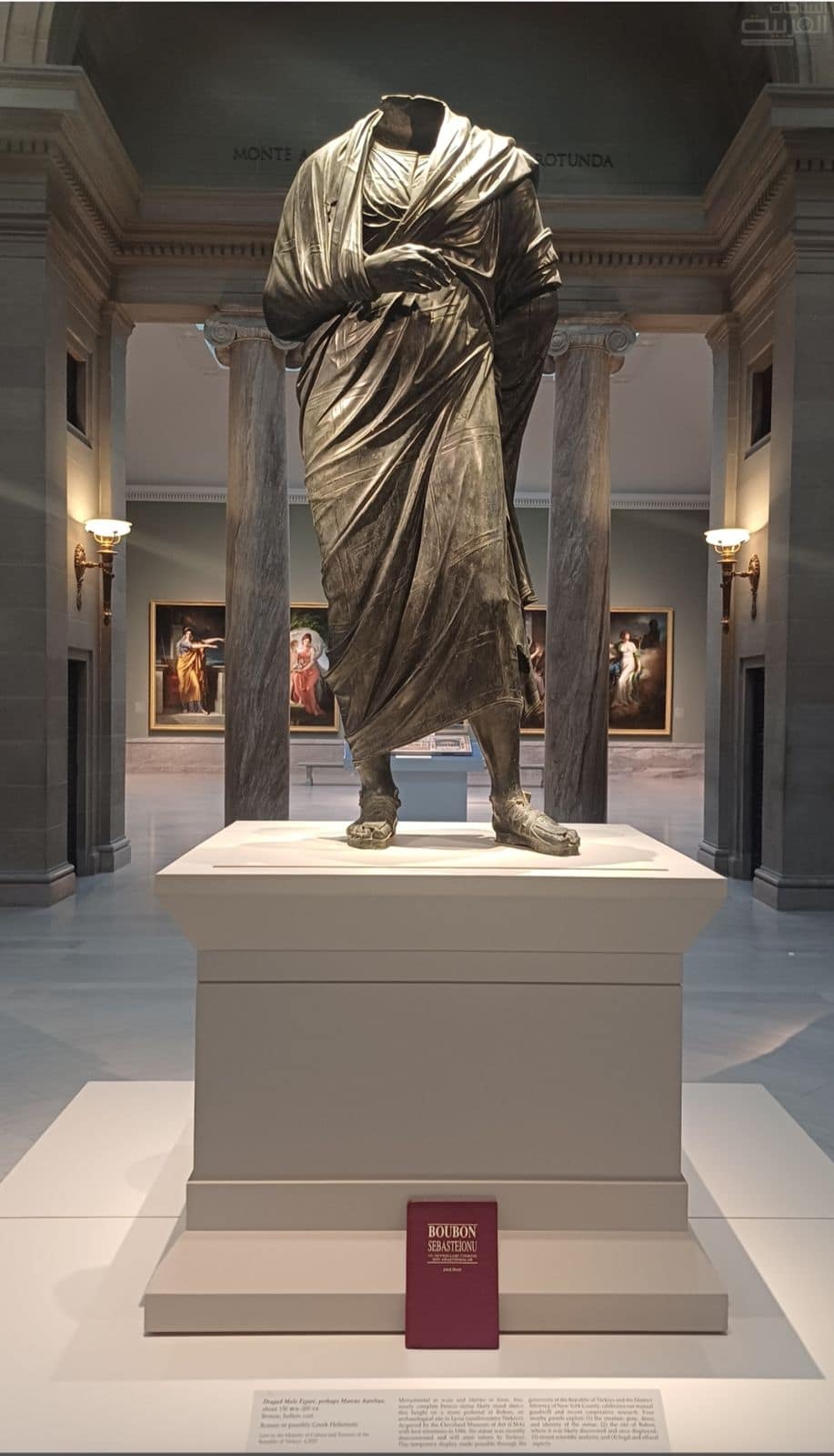 ويُعد التمثال، الذي يعود تاريخه إلى القرنين الثاني والثالث الميلاديين، من أبرز الأعمال البرونزية في منطقة الأناضول، ويتميّز بتصويره ماركوس أوريليوس كفيلسوف، وهو نمط نادر في الفن الروماني. وقد نُهب التمثال من موقع السيباستيون بمدينة بوبون الأثرية خلال ستينيات القرن الماضي.