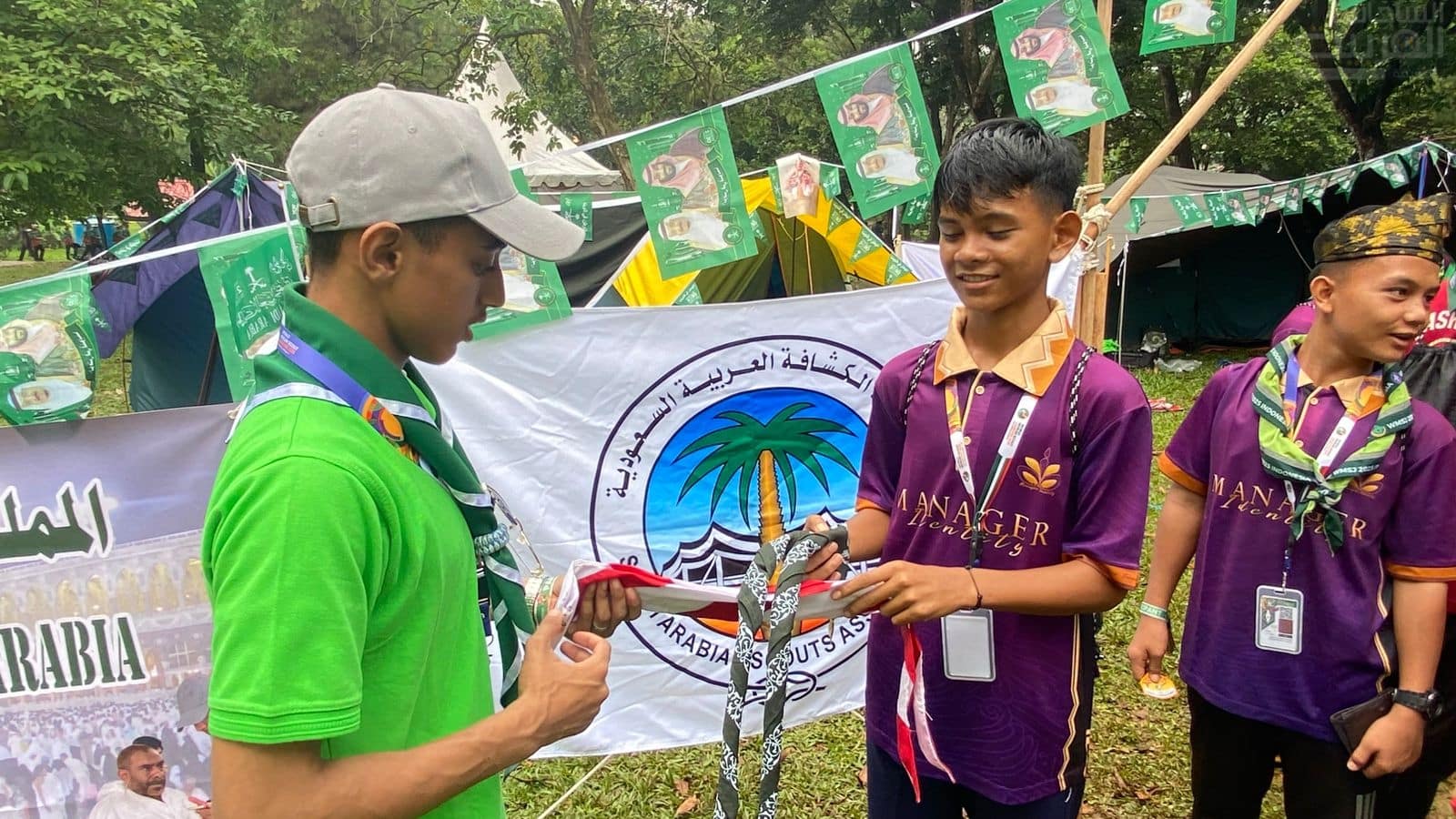 شهدت مشاركة جمعية الكشافة العربية السعودية في الجامبوري العالمي للكشاف المسلم 2025، الذي تستضيفه العاصمة الإندونيسية جاكرتا بالمعسكر الكشفي الوطني في “سيبوبور”، إقبالاً لافتاً من الوفود الكشفية العالمية على تبادل الهدايا التذكارية مع الكشافة السعوديين.
