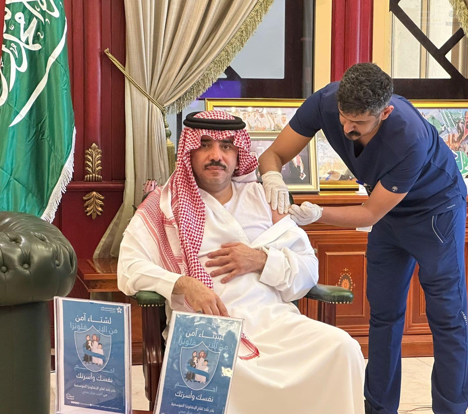 دشّن محافظ الغاط منصور بن سعد السديري اليوم في ديوان المحافظة، الحملة الميدانية للتطعيم ضد الإنفلونزا الموسمية، بحضور وكيل المحافظة الأستاذ فهد السديري، وعدد من مسؤولي الجهات الصحية والإدارية بالمحافظة