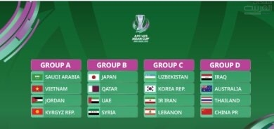 المجموعة الثالثة تضمّ أوزبكستان وكوريا الجنوبية وإيران ولبنان، والرابعة العراق وأستراليا وتايلاند والصين.