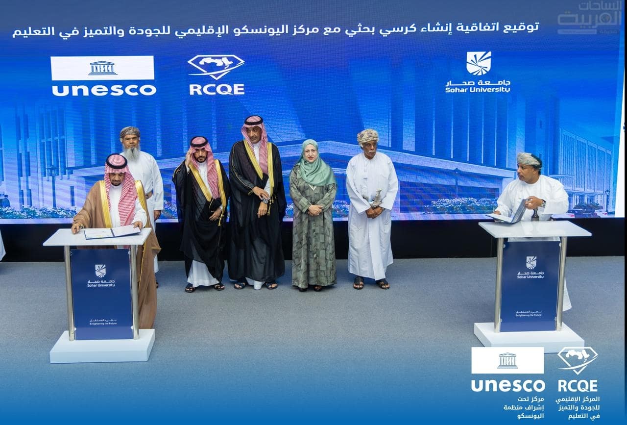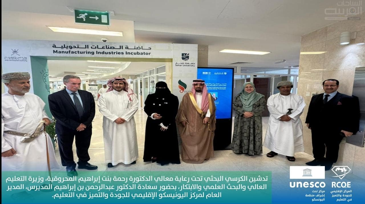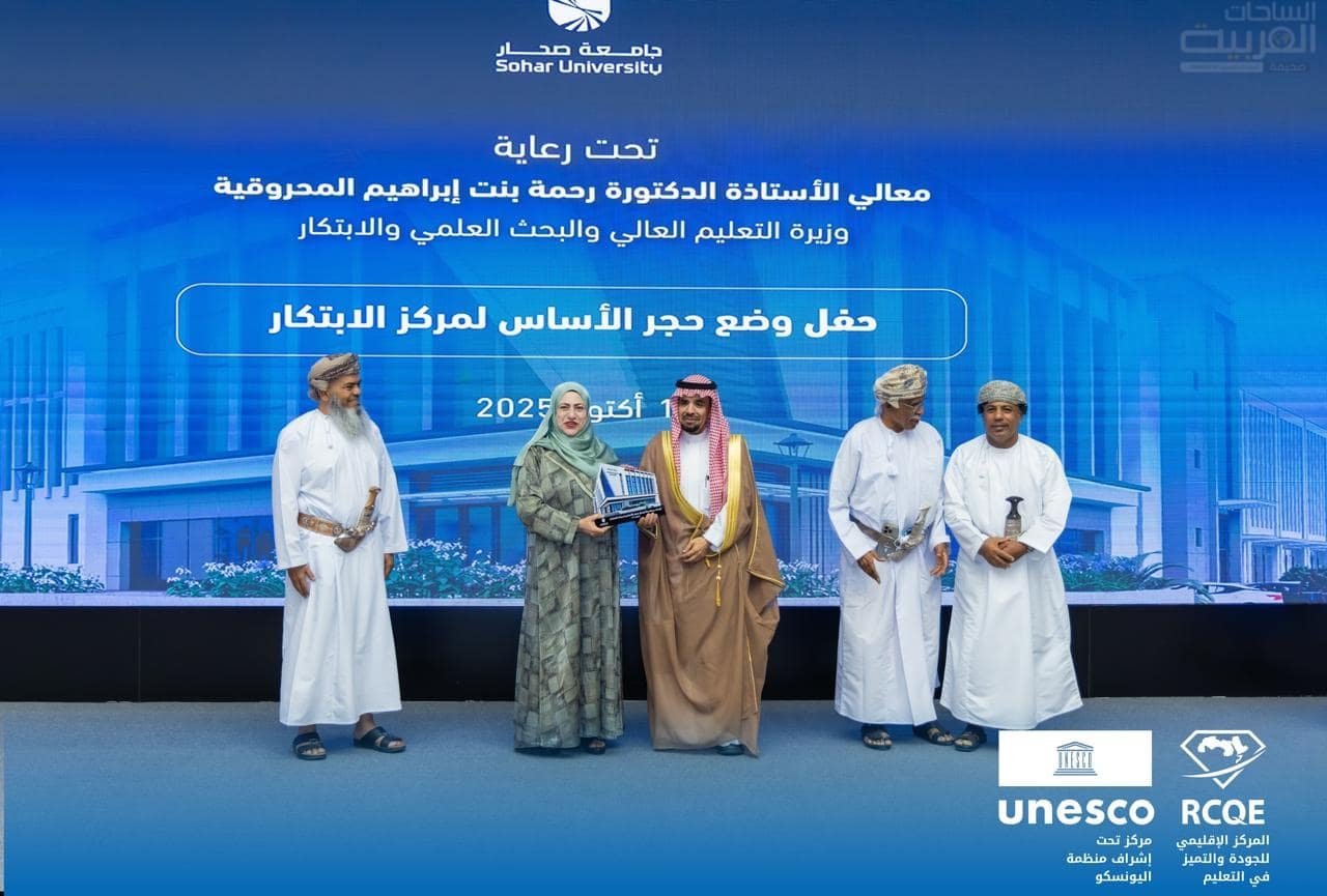 تم اليوم تحت رعاية وحضور معالي الأستاذة الدكتورة رحمة بنت إبراهيم المحروقية وزيرة التعليم العالي والبحث العلمي والابتكار بسلطنة عمان، و الدكتور حمدان بن سليمان الفزاري رئيس جامعة صحار وعدد من أصحاب السعادة، قيادات جامعة صحار بمجلس الأمناء ومجلس الإدارة للجامعة، بجامعة صحار للاحتفاء بوضع حجر الأساس لمركز الابتكار وإعلان الشراكة مع جامعة صحار لتأسيس كرسي علمي ( بحثي ) لمركز اليونسكو الإقليمي للجودة والتميز في التعليم بجامعة صحار (سلطنة عمان) بمجال تكنولوجيات الطاقة المتجددة والمستدامة الناشئة ولمدة خمس سنوات تبدأ في 1 أكتوبر 2025 وتنتهي في 1 أكتوبر 2030 وهي شراكةٌ تُجسِّد الالتزام المشترك بتعزيز جودة التعليم والبحث والابتكار، وإسناد التحوّل المستدام وطنيًا وإقليميًا ودوليًا ؛ لحظةٌ تؤذن بالانتقال من الرؤية إلى الإطلاق، ومن الطموح إلى التنفيذ والأثر.في خطوة نوعية لتعزيز البحث التطبيقي، وبناء القدرات، ونقل المعرفة بما يدعم أولويات الاستدامة واقتصاد المعرفة.
