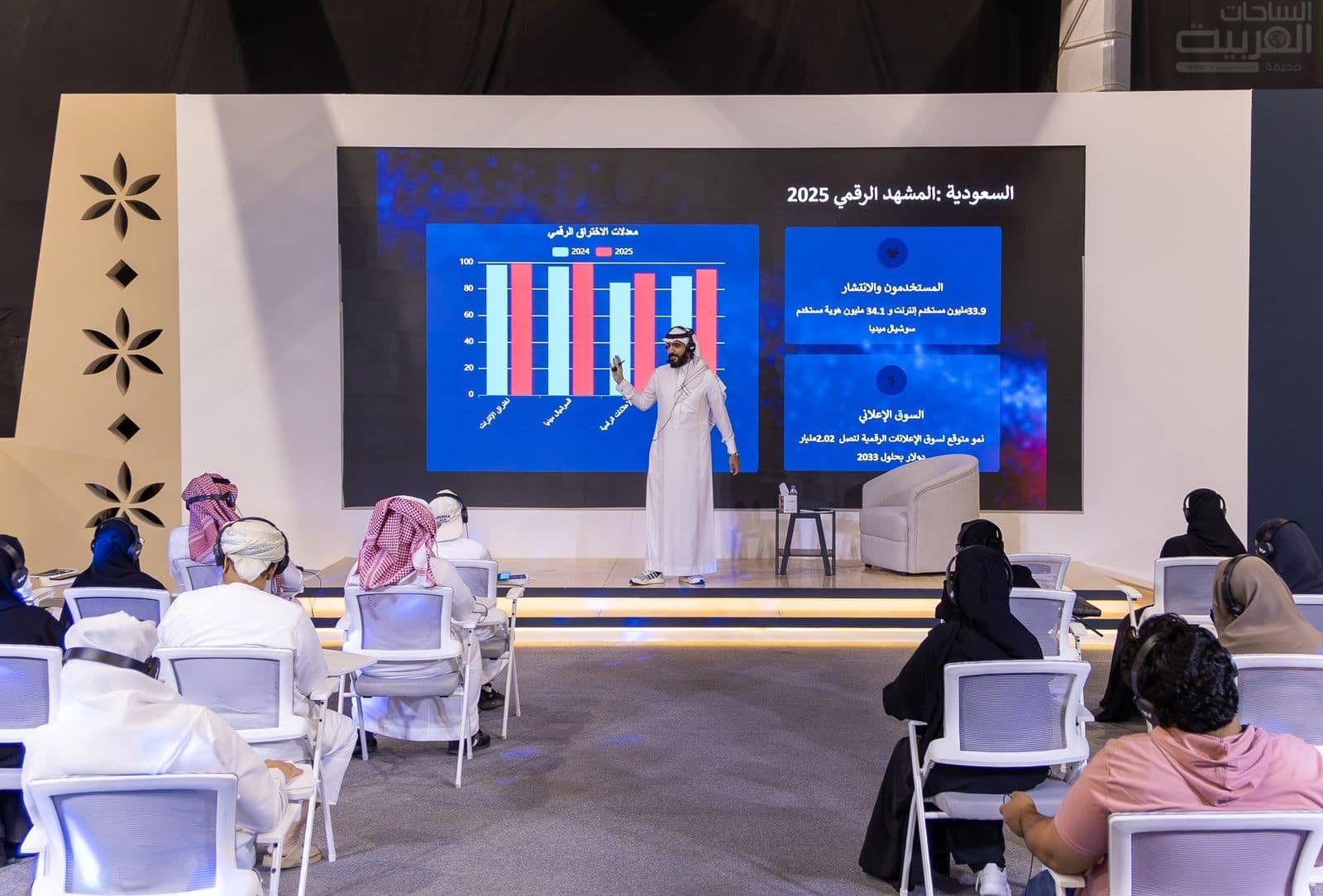 وركَّزت الورشةُ على دَور الإعلام الرَّقميّ في تعزيز الحضور الثَّقافيّ عالميًّا، واستعرضت التَّحولاتالتي أحدثتها المنصَّات الرَّقميّة في إيصال المحتوى الثَّقافيّ وتوسيع نطاق التَّفاعل عبر تقنيَّاتالبثِّ المباشر والذَّكاء الاصطناعي والواقع المعزّز.