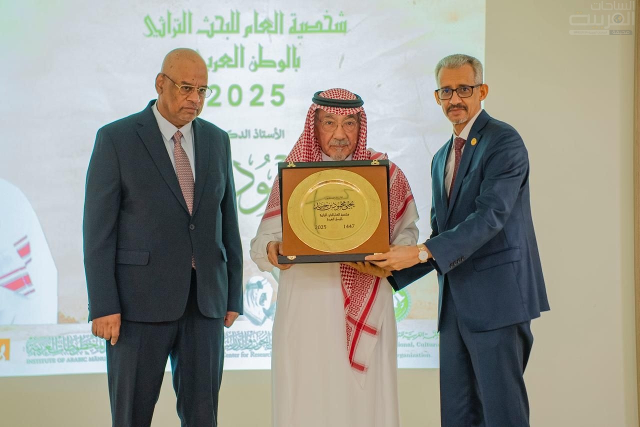 وجرى خلال الحفل تكريمُ الأستاذ الدكتور يحيى محمود بن جنيد من (المملكة العربية السعودية) شخصيةَ العام للبحث التراثي بالوطن العربي، الذي عبر في كلمته خلال الحفل، عن سعادته بهذا التكريم، مؤكدًا أن التراث ليس ماضيًا يُستعاد فحسب، بل أداة حية لفهم المجتمع وتطور الحياة الفكرية عبر العصور، وداعيًا إلى إعداد كشاف آلي عام لكتب التراث يربط مصطلحاتها وموضوعاتها وفق منهج علمي دقيق ييسّر على الباحثين دراستها واستثمارها المعرفي.