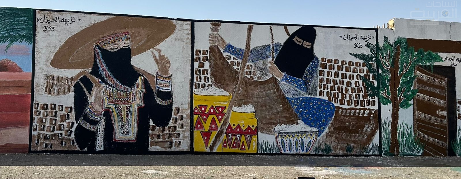 في منتزه الخزامى، حيث تتراقص الألوان على جدران الحكاية، امتزج شذى المكان بريشة الفنان، فانبثقت جدارية تنطق بالهوية وتحتفي بالجمال. تحت إشراف المكتب الاستراتيجي لتطوير منطقة الجوف، وبتعاون من أمانة المنطقة وبدعم دهانات الجزيرة، واشراف الأستاذ حابس الفندي اجتمع الفنانون ليتركوا بصمتهم في ذاكرة المكان.