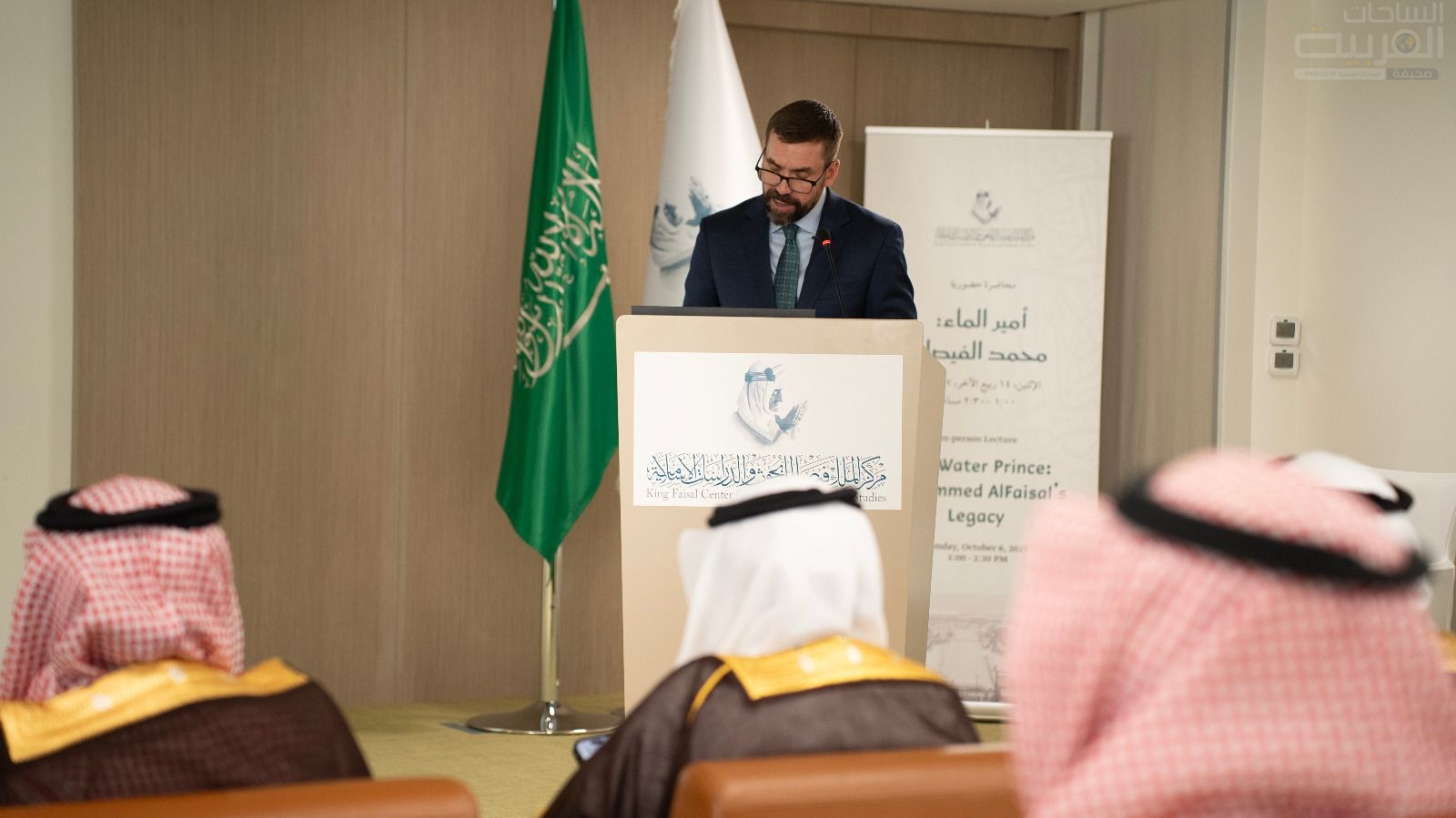 نظم مركز الملك فيصل للبحوث والدراسات الإسلامية الذي يتخذ من العاصمة السعودية مقراً له أمس محاضرة للباحث مايكل كريستوفر لو تحت عنوان ” أمير الماء” بحضور صاحب السمو الملكي الأمير تركي الفيصل، والمهندس شارخ الشارخ نائب رئيس هيئة المياه للشؤون الفنية والمشروعات، والمهندس عبدالعزيز الشيباني وكيل وزارة البيئة والمياه والزراعة، وعدد من المسؤلين والمهتمين.