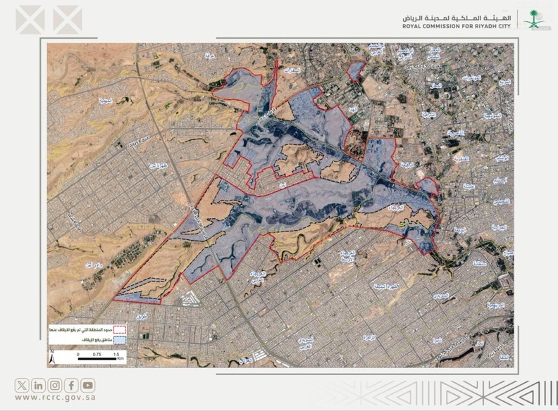 انطلاقاً من توجيهات سمو ولي العهد -حفظه اللّٰه- الهادفة إلى دعم القطاع العقاري وتحقيق التوازن فيه بما يخدم التنمية الشاملة؛ تعلن الهيئة الملكية لمدينة الرياض عن رفع الإيقاف عن الأراضي الواقعة غرب مدينة الرياض، بمساحة إجمالية تبلغ 33.24 كم2، ويشمل ذلك تمكين الملاك من التصرف بالعقارات بالبيع والشراء، وأعمال التخطيط والتقسيم والتجزئة، وإصدار رخص البناء، وذلك وفق تطبيق الكود العمراني لمنطقة وادي حنيفة وروافده.