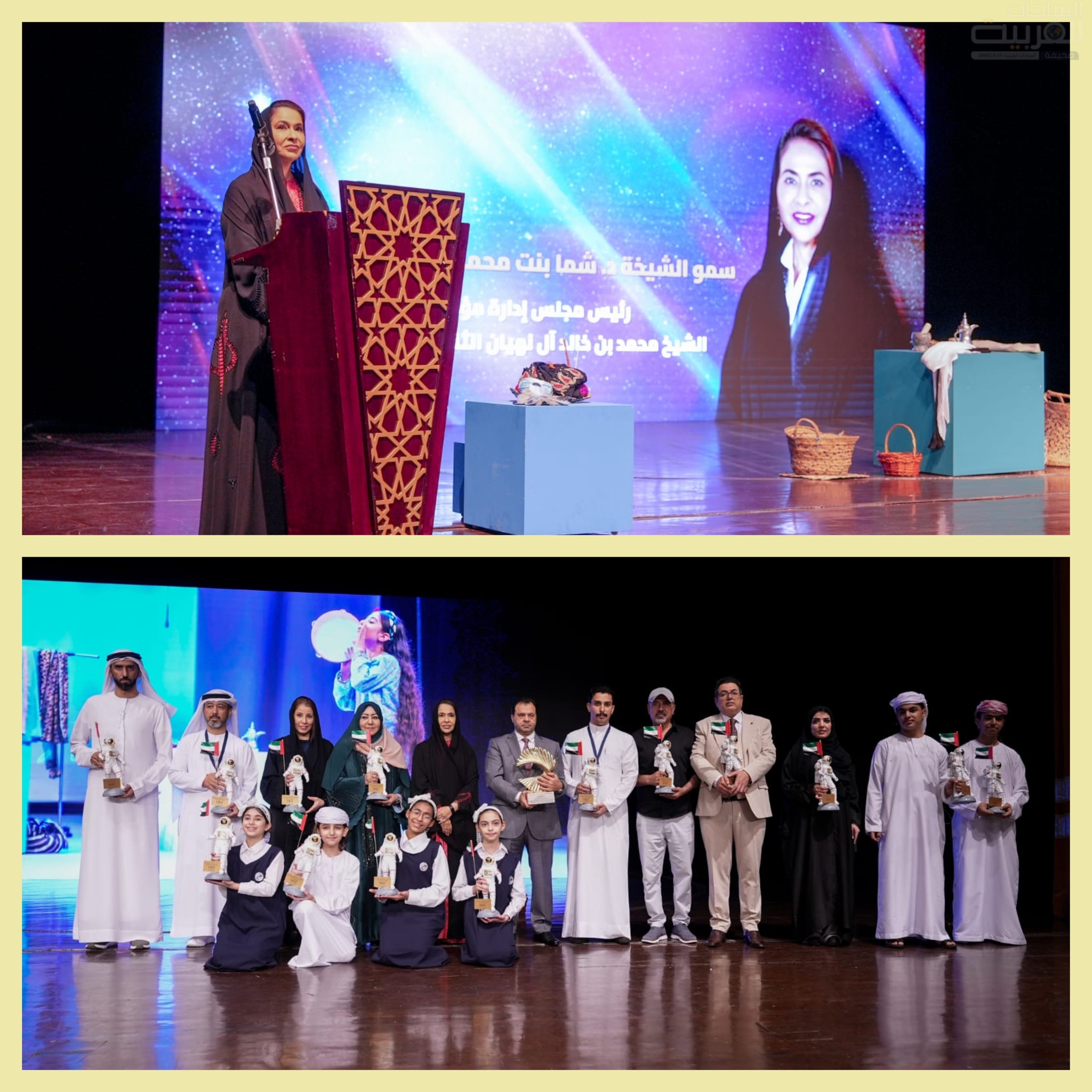 “أيها الأبناء، رسالة المسرحية واضحة: رفع علم الإمارات في الفضاء يبدأ من رفع إرادتكم في الصف، في البيت، وفي كل ميدان. يبدأ من التزامكم بميراثكم القيمي، ومن استلهامكم لرؤية قيادتكم التي آمنت أن التعليم والاستثمار في الإنسان هما الطريق الأقصر والأصدق نحو المستقبل… نحو الذكاء الاصطناعي والتكنولوجيا والعلم الذي لا ينتهي. التعليم والمعرفة ليستا خيارات، بل هما الطريق الوحيد لكي نكون جزءاً من زمن يتغير كل يوم.”