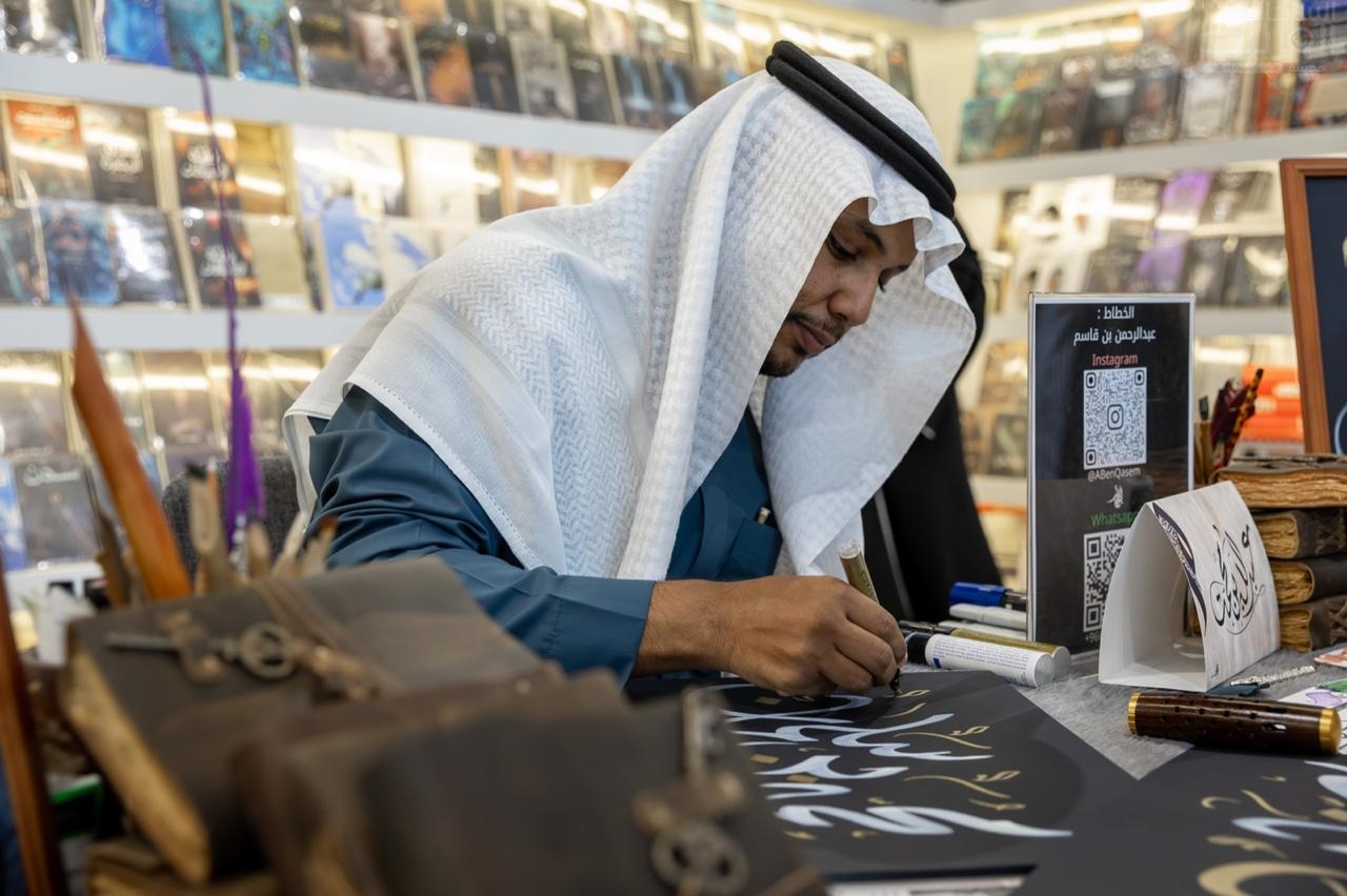 لفتت لوحاتُ الفنَّان والخطَّاط عبدالرَّحمن بن قاسم أنظارَ زُوَّار معرض الرّياض الدّولي للكتاب 2025، الذي تُنَظِّمُه هيئةُ الأدب والنَّشر والتَّرجمة، حيث استَوقفت أعمالُه الحروفيَّة المفعمةُ بالعباراتِ الوطنيَّة رُوَّادَ المعرض، لِما تحمله من جماليَّاتٍ بصَريَّة ومعانٍ تُعبِّر عن الولاء والانتماء.
