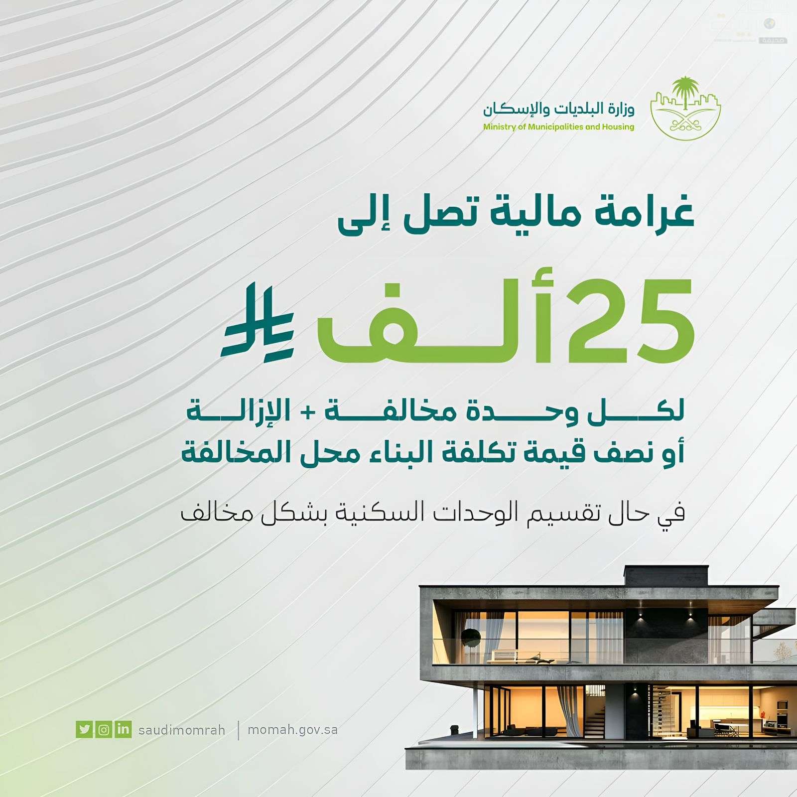 يشار إلى أن تحديث لائحة الجزاءات عن مخالفات البناء وتقسيم المباني إلى وحدات غير مرخّصة يأتي ضمن الجهود المستمرة لتطوير الأنظمة البلدية والرقابية، الساعية إلى رفع مستوى الامتثال وتحسين البيئة الحضرية في المدن، داعية الملاك والمستثمرين إلى الالتزام بالأنظمة قبل تنفيذ أي أعمال تقسيم أو تعديل في المباني.
