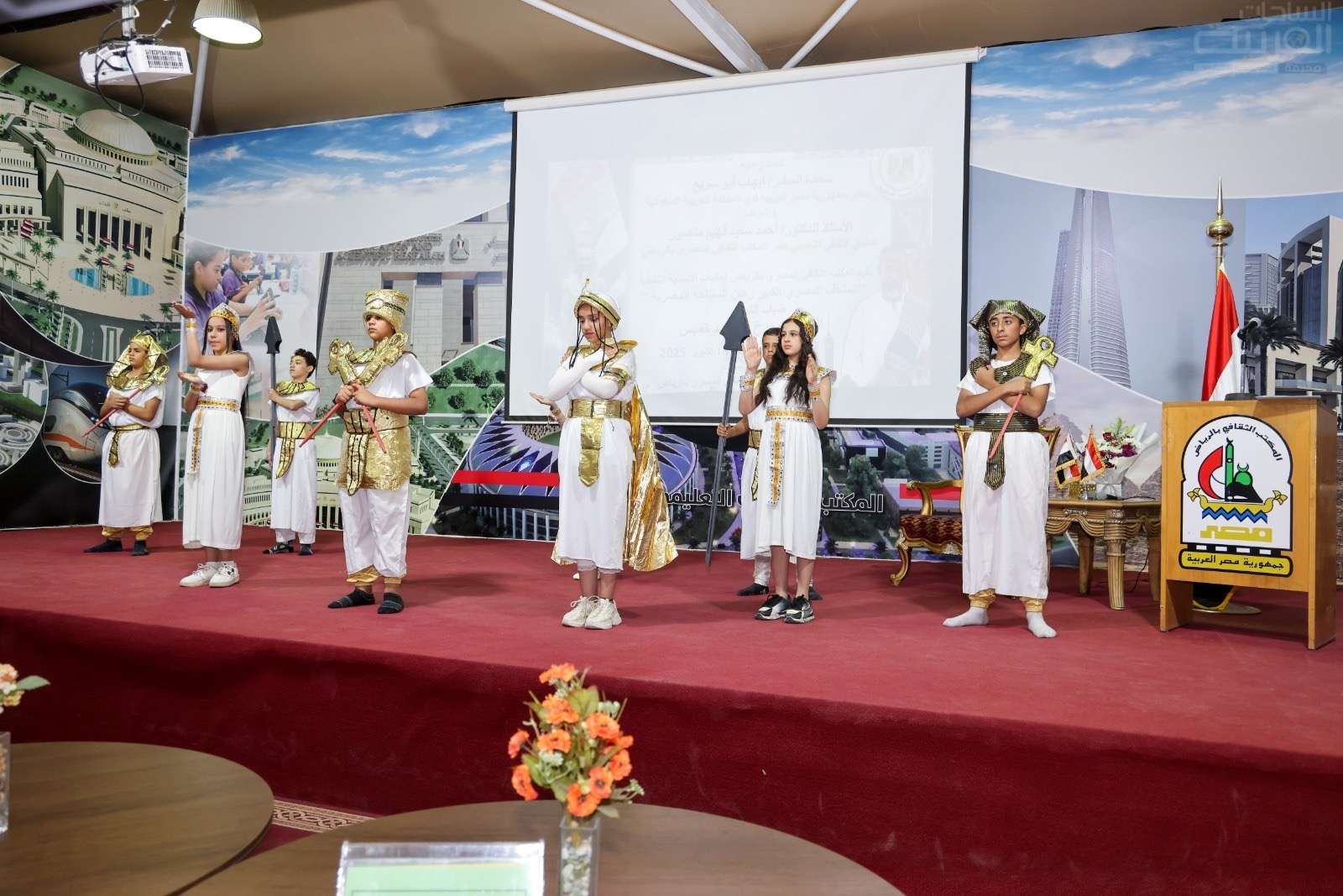 وقد تضمن برنامج الأمسية عرض فيلم تسجيلي عن المتحف المصري الكبير، بالإضافة إلى عدد من العروض الفنية التي قدمها طلاب وطالبات مدارس المسار التعليمي المصري بالرياض، وتميزت تلك العروض بأنها استلهمت الزي الفرعوني وركزت على الأداء الفني المصري بما يتناسب مع طبيعة الأمسية، وأبعادها الثقافية والأثرية التي تعكس الهوية المصرية.