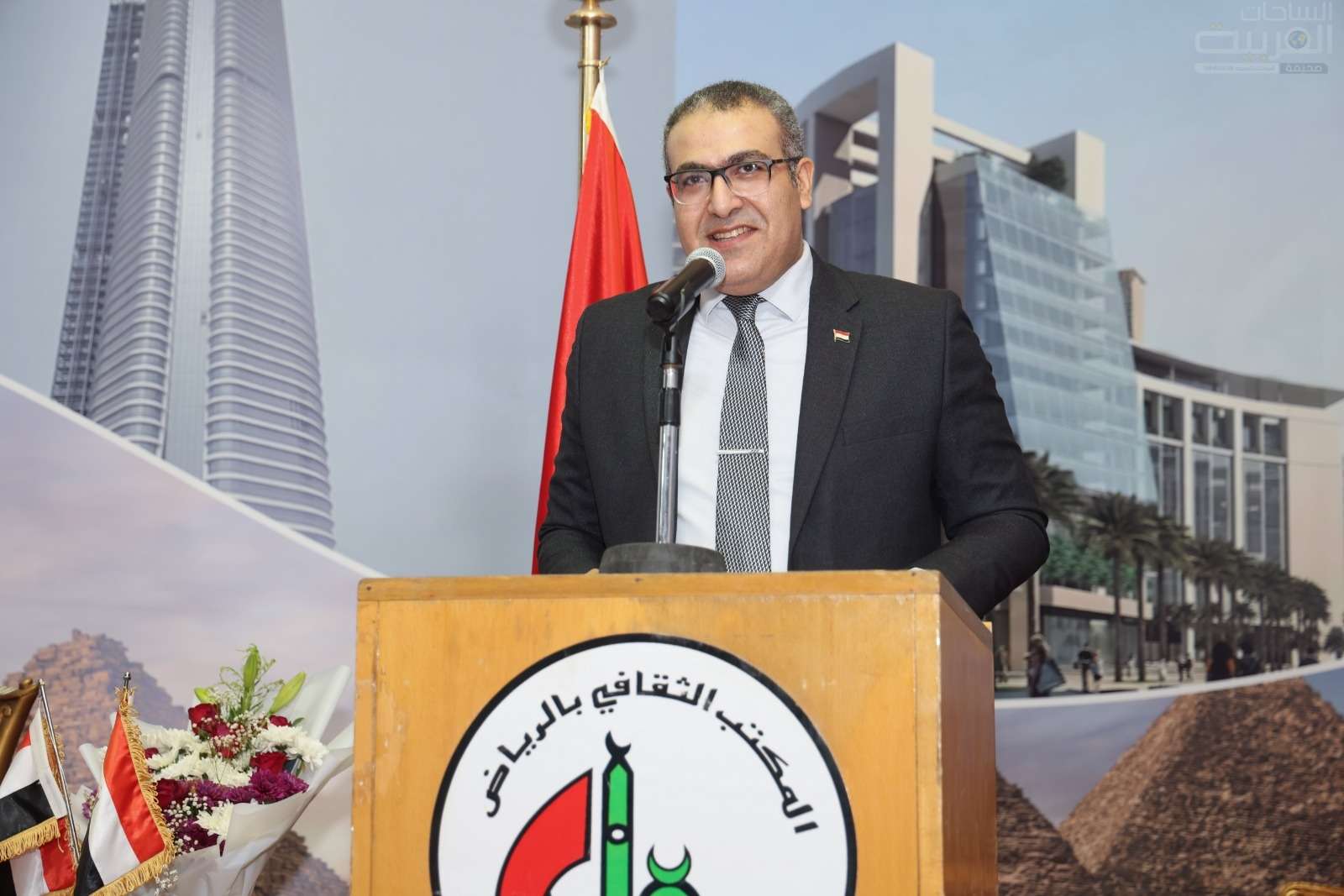 نظَّم المكتب الثقافي المصري بالرياض مساء أمس الخميس 16 أكتوبر 2025م أمسية ثقافية بعنوان (المتحف المصري الكبير.. رهان السياحة المصرية)، برعاية معالي السفير إيهاب أبو سريع سفير جمهورية مصر العربية بالمملكة العربية السعودية، وإشراف الأستاذ الدكتور أحمد سعيد فهيم منصور الملحق الثقافي ورئيس البعثة التعليمية المصرية بالمملكة؛ تحدث فيها الفنان والمؤرخ المصري الدكتور محمد خميس، وحضرها القنصل ياسر هاشم قنصل جمهورية مصر العربية بالرياض، والمستشار محمد عليان المستشار العمالي بالسفارة المصرية، وأدارها الإعلامي المصري حماده عثمان، بحضور حشد كبير من أبناء الجالية المصرية بالرياض، وعدد من المهتمين بالسياحة والآثار.