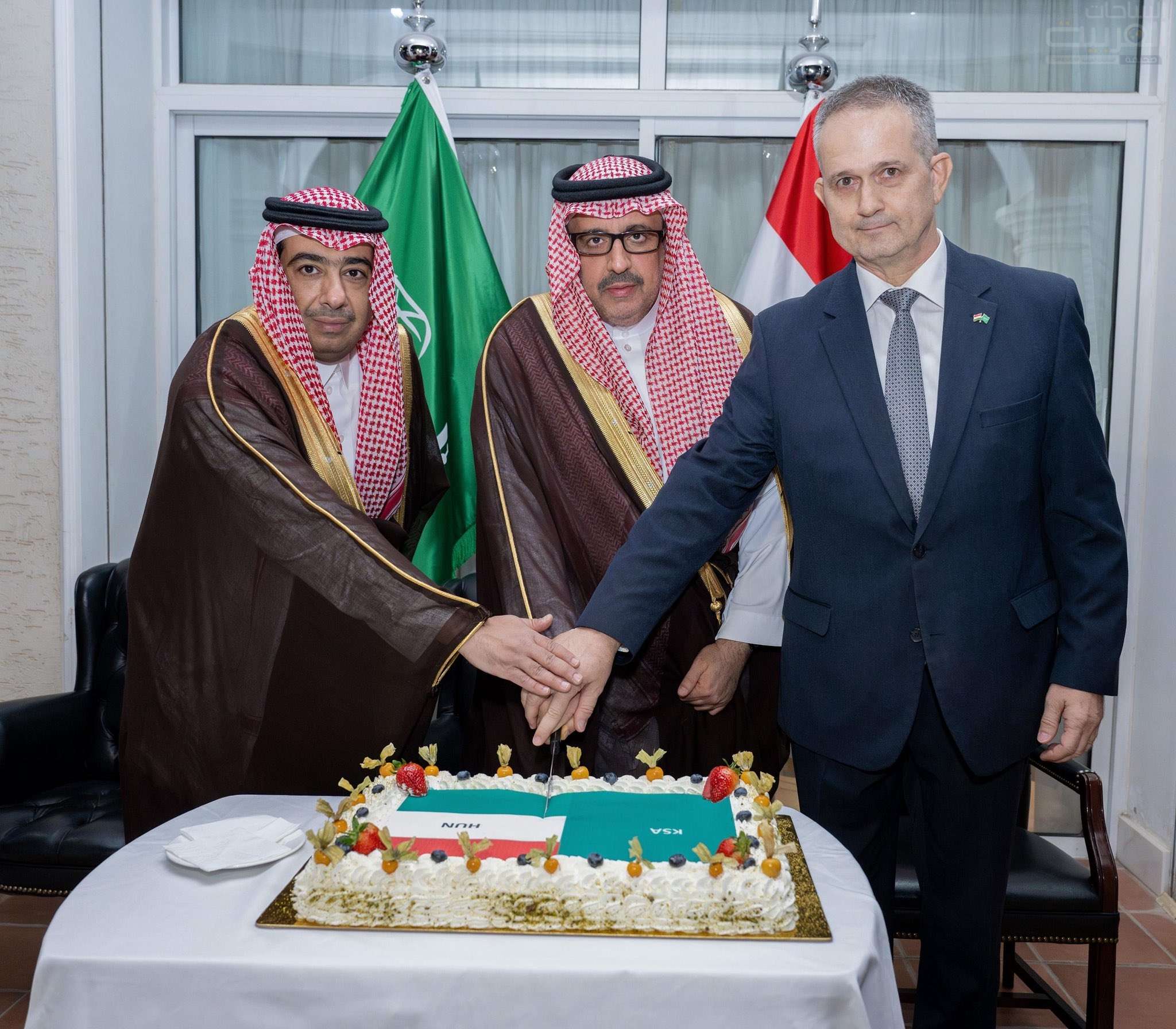 وكان في استقبال معاليه لدى وصوله لمقر الحفل سفير جمهورية المجر لدى المملكة أتيلا تار، وعددٌ من منسوبي السفارة.