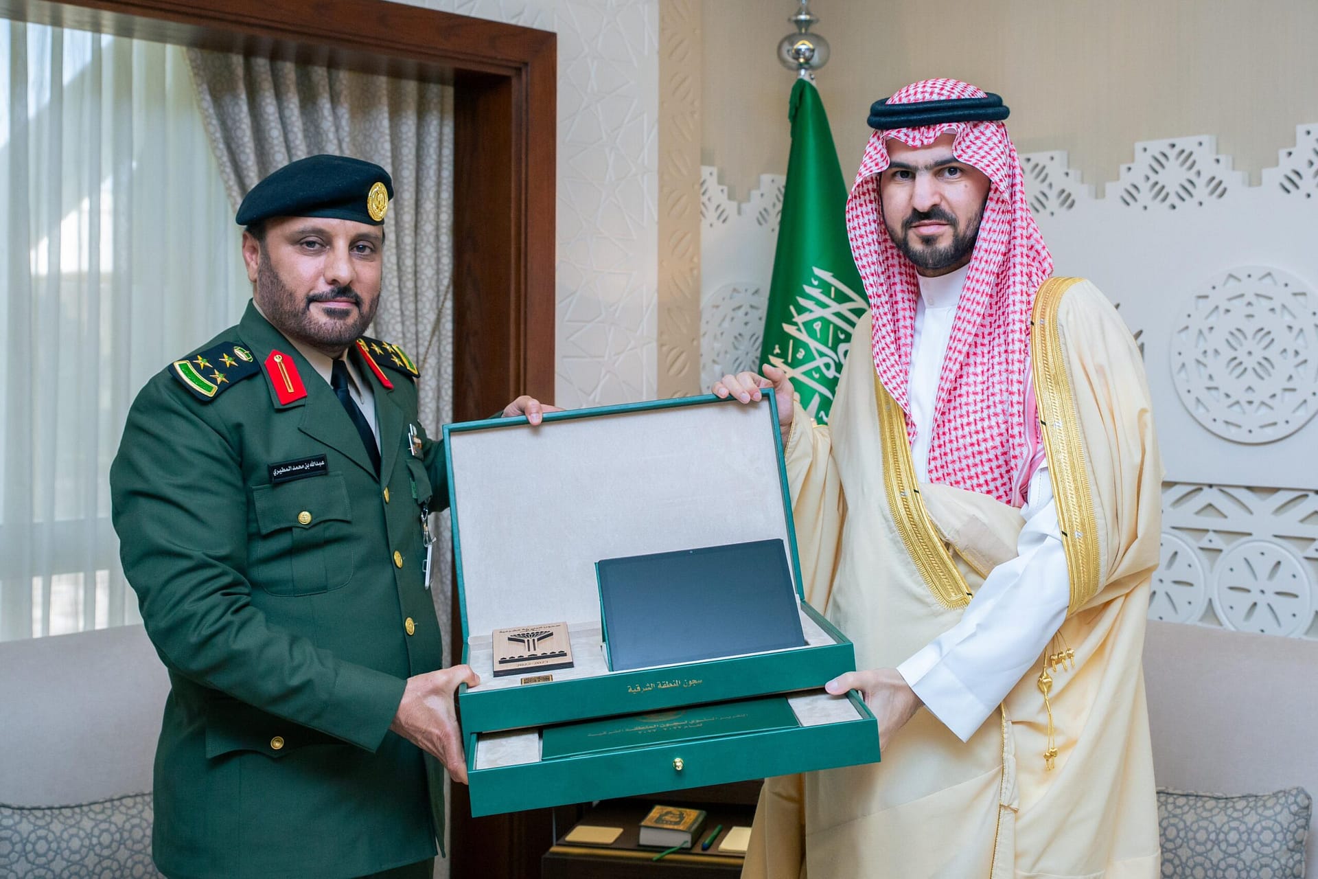 استقبل صاحب السمو الملكي الأمير سعود بن بندر بن عبدالعزيز نائب أمير المنطقة الشرقية في مكتب سموه بديوان الإمارة امس الأحد العميد عبدالله بن محمد المطيري مدير سجون المنطقة الشرقية والذي قدم لسموه التقرير السنوي للعام 2023 .