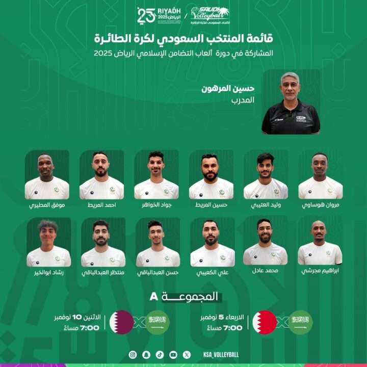 المنتخب السعودي للكرة الطائرة يعلن قائمته المشاركة في دورة ألعاب التضامن الإسلامي 2025