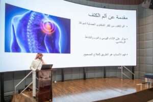 وتناول الدكتور سعد القحطاني، الذي يعمل ايضاً رئيس قسم جراحة العظام بمستشفى الملك فهد الجامعي بالخبر التابع لجامعة الامام عبدالرحمن بن فيصل، الأسباب الرئيسية لألم الكتف ومنها: التهاب أو قطع أوتار الكتف، الكتف المتجمدة “الكتف المتيبس”، التهاب وخشونة المفصل، خلع أو كسر الكتف، إصابات العضلة ذات الرأسين، التهاب مفصل الأخرم والترقوة، ألم مُحال من الرقبة أو القلب، متلازمة الانحشار العظمي، مؤكداً بأن ألم الكتف متنوع الأسباب لكنه قابل للعلاج في معظم الحالات مع ضرورة الكشف المبكر والعلاج المنتظم، وأن العلاج لدى متخصص يسهل ويمنع المضاعفات.