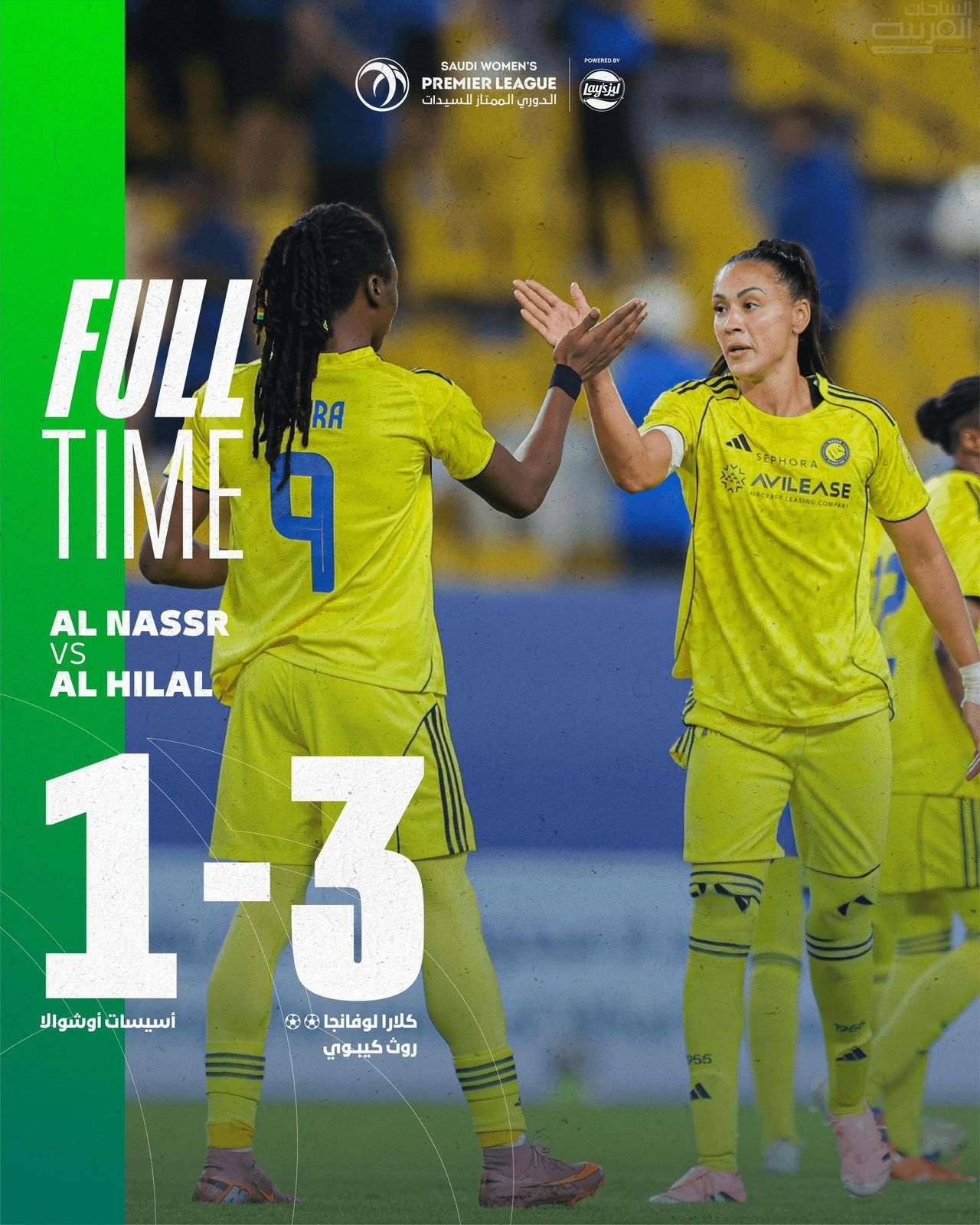 وفي الشوط الثاني، واصلت الهدافـة كلارا لوفانجا تألقها بتسجيل هدف التقدم للنصر في الدقيقة 60، ثم أضافت الهدف الثالث في الدقيقة الأولى من الوقت بدل الضائع، لتقود فريقها لانتصار كبير منح العالمي الصدارة بـ15 نقطة، فيما تجمد رصيد الهلال عند 12 نقطة