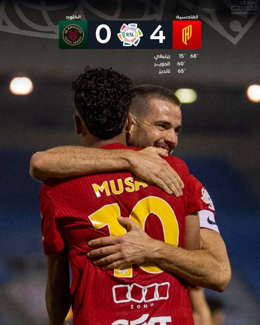 عاد نادي القادسية إلى سكة الانتصارات من جديد، بعدما حقق فوزًا كبيرًا على نادي الخلود بنتيجة 4 – 0، في اللقاء الذي جمع الفريقين مساء (الخميس) على ملعب الأمير محمد بن فهد بالدمام، ضمن منافسات الجولة الثامنة من دوري روشن السعودي للمحترفين، بقيادة الحكم الهولندي سردار غوزو.