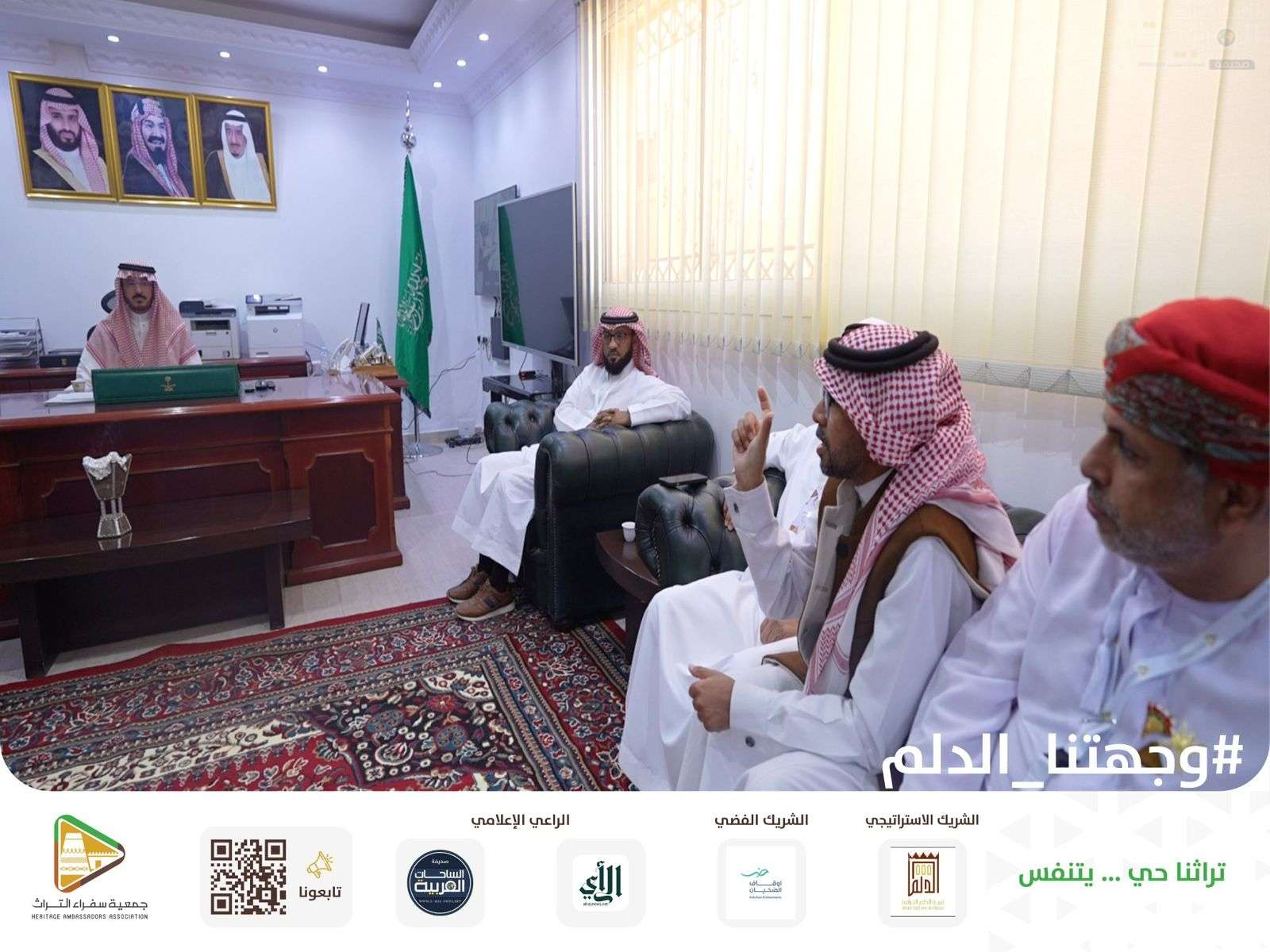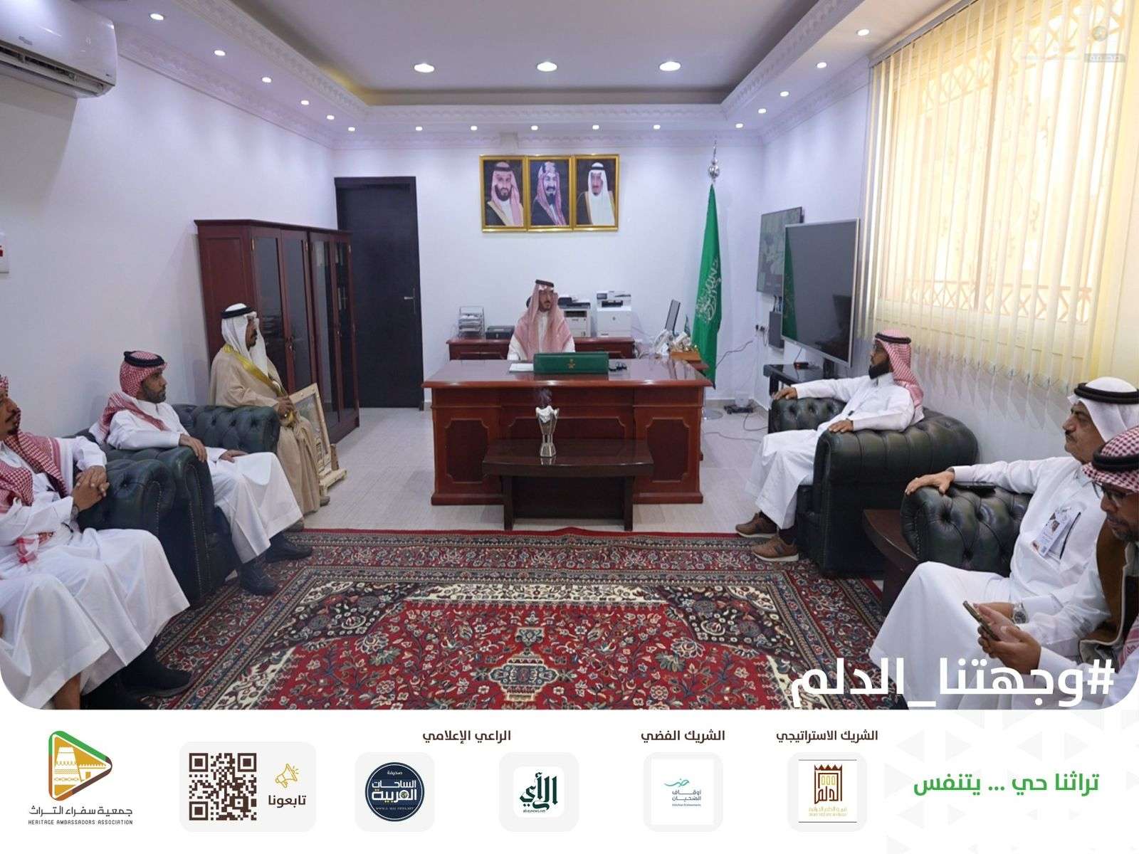 وخلال اللقاء، اطلع سعادته على تفاصيل الزيارة التي شملت عددًا من المواقع التاريخيةوالتراثية في المحافظة، حيث استعرض الوفد أبرز المحطات التي عكست عمق الإرثالحضاري الذي تزخر به الدلم، وما تمثله من قيمة وطنية وثقافية في خارطة التراثالسعودي.