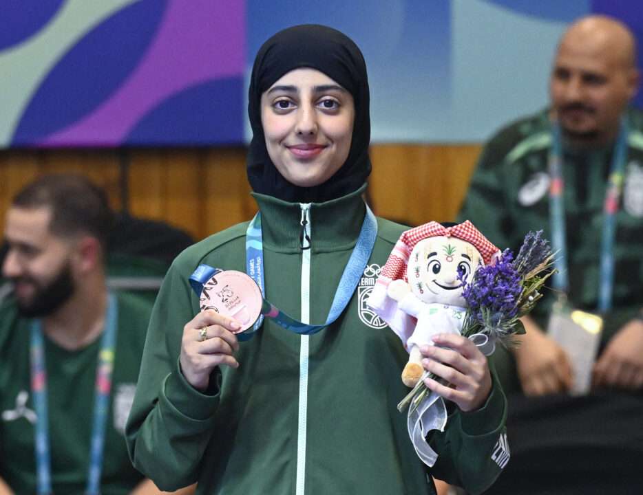 وحصلت عبير الشهري، على الميدالية البرونزية لمنافسات وزن تحت 50 كجم، بعد فوزها على الإماراتية حوراء العجمي في لقاء تحديد المركزين الثالث والرابع بنتيجة 11 – 5، رافعه بذلك الرصيد السعودي من الميداليات إلى 13 ميدالية (1 ذهبية، 1 فضية، 11 برونزية).