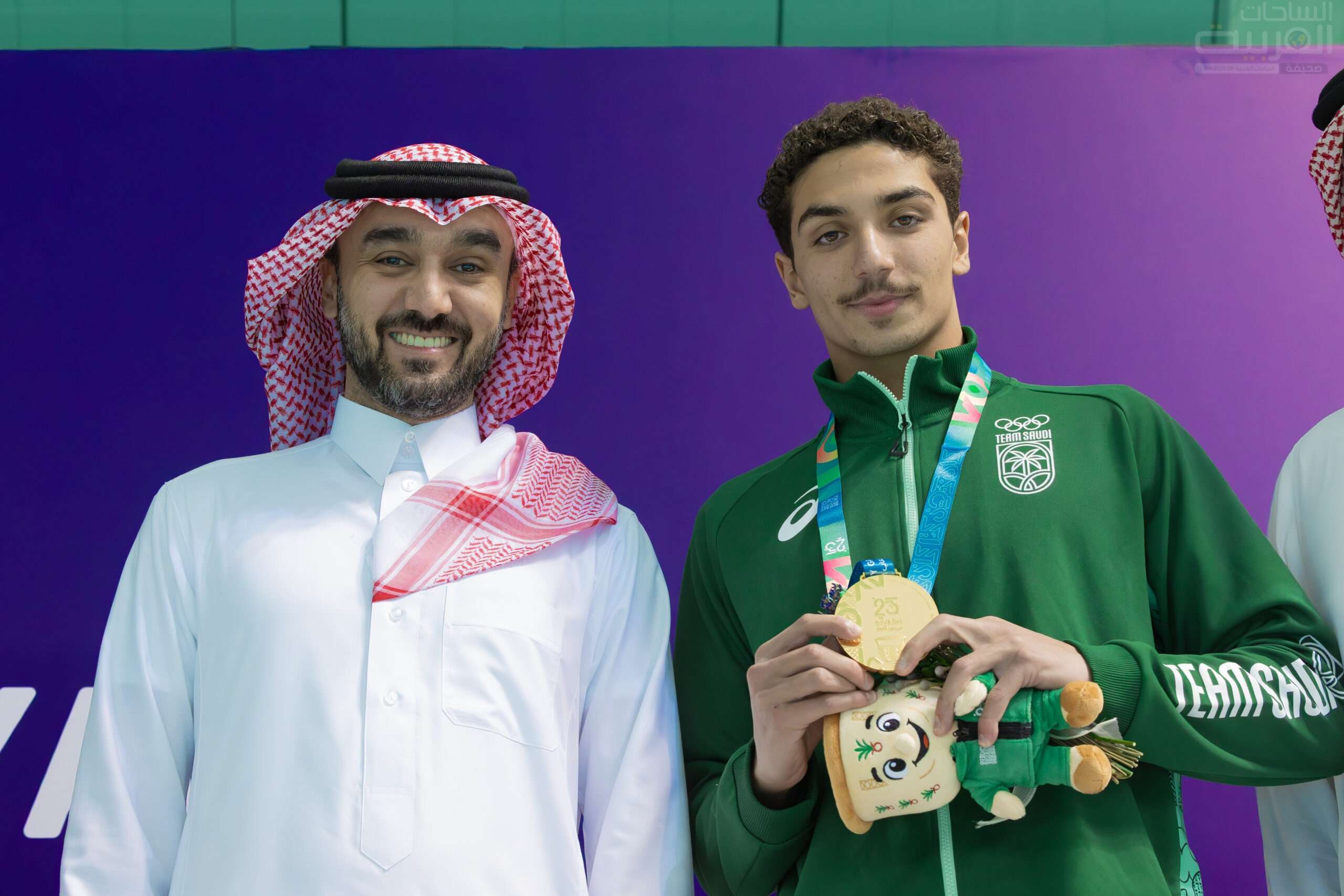 أنتزع لاعب المنتخب السعودي للسباحة زيد السراج، الميدالية الذهبية السعودية الأولى، في دورة الألعاب الرياضية للتضامن الإسلامي السادسة، بعد فوزه بذهبية سباق 100م حرة، الذي جرى مساء اليوم الثلاثاء، ضمن منافسات مسابقة السباحة بمجمع الأمير فيصل بن فهد الأولمبي بالرياض، بحضور رئيس اللجنة الأولمبية والبارالمبية السعودية الأمير عبدالعزيز بن تركي الفيصل، وسمو نائبه الأمير فهد بن جلوي بن عبدالعزيز بن مساعد.