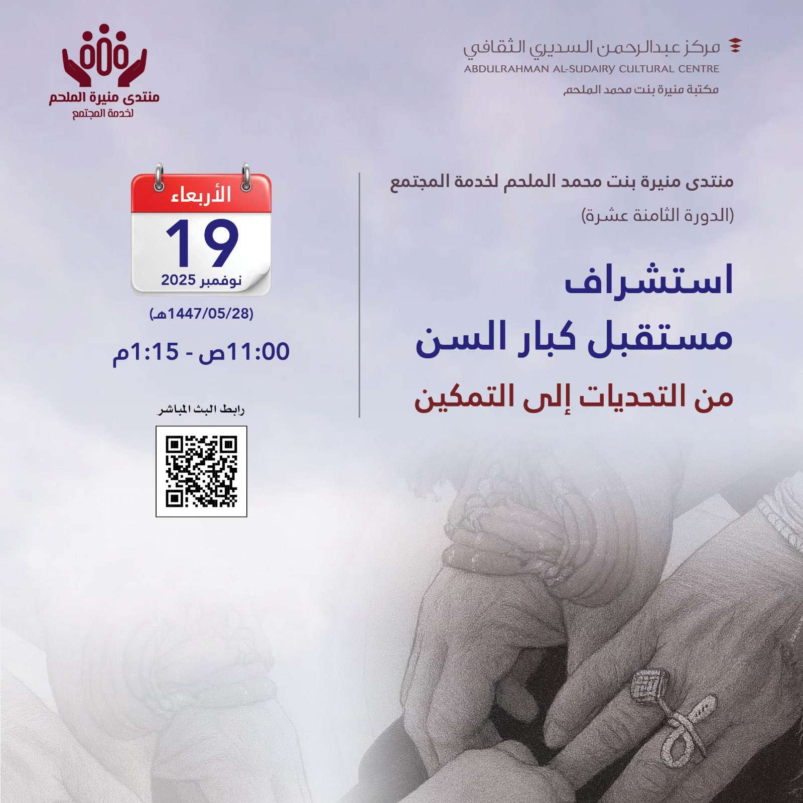 وأكدت الدكتورة مشاعل أن المنتدى يسعى لتمكين كبار السن وتعزيز دورهم كمورد تنموي فاعل، قادرعلى نقل خبراته المتراكمة والمشاركة بفاعلية في مسيرة البناء، بما في ذلك دعم مشاركتهم في البيئةالرقمية. وشددت السديري على أن رعاية كبار السن هي “رسالة إنسانية ومجتمعية راسخة، اعترافًابفضلهم وتقديرًا لعطائهم”، مشيرة إلى أن اختيار الموضوع يهدف إلى التوعية المجتمعية بضرورةإشراكهم في خدمة المجتمع بما يملكونه من خبرات ورغبة في استمرار العطاء.