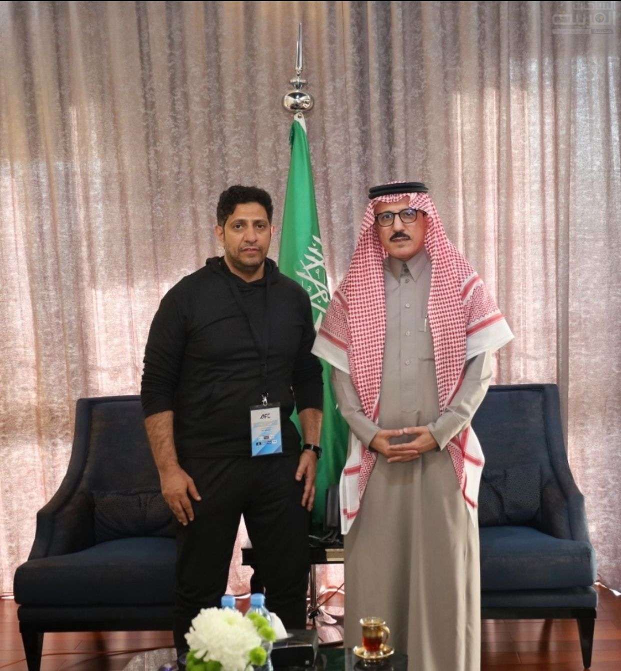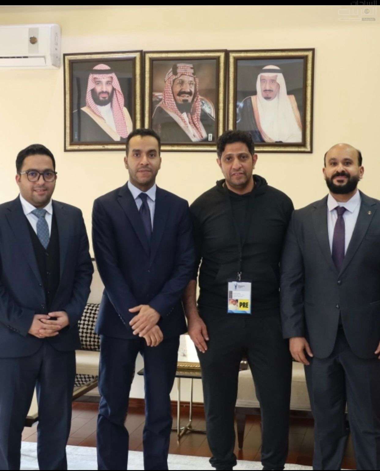 مدير القطاع الرياضي لنادي النصر السيد سيماو وإداري الفريق الأول الأستاذ خالد الغنيمان ومسؤول العمليات الأستاذ أحمد السرحان.
