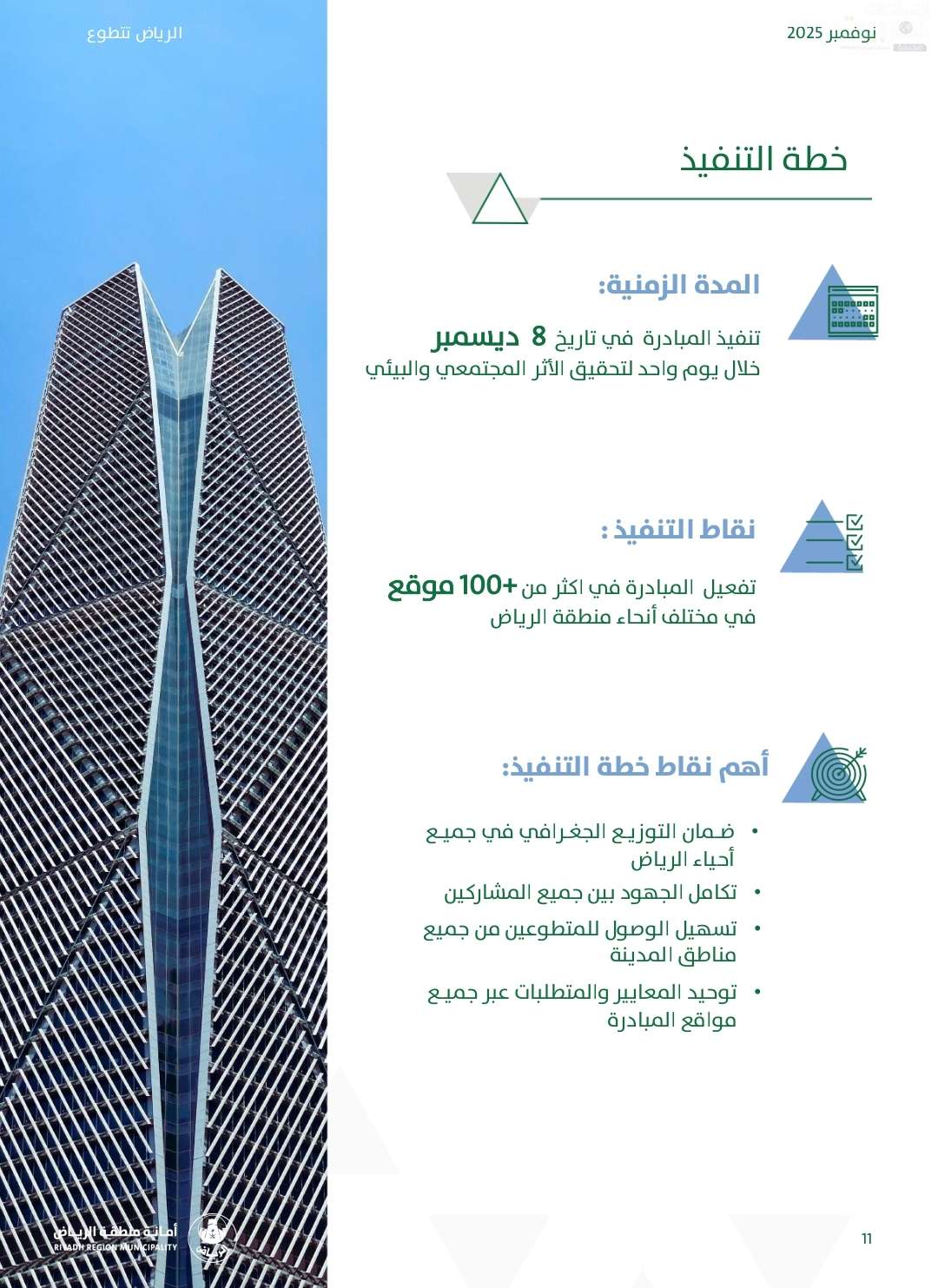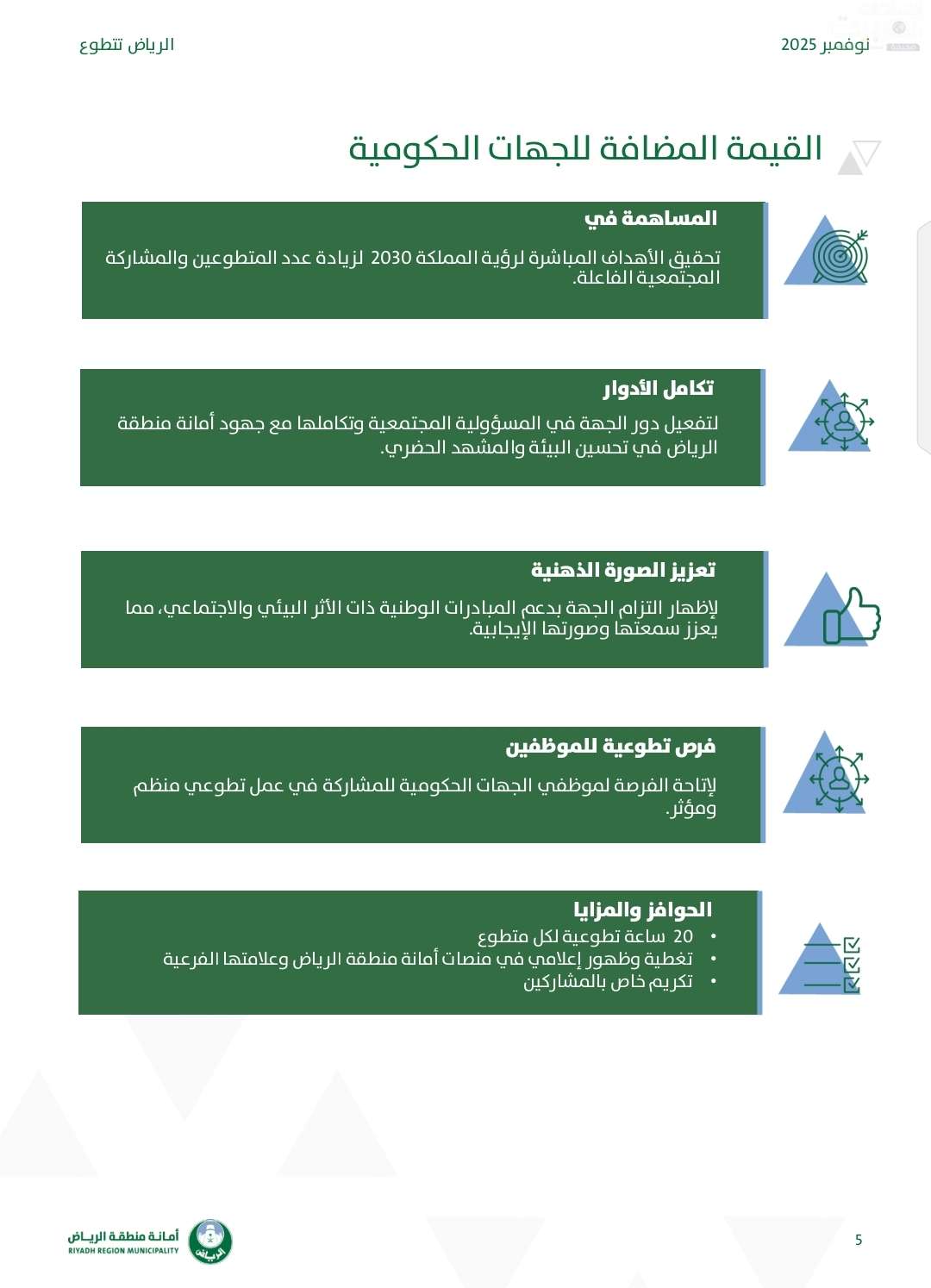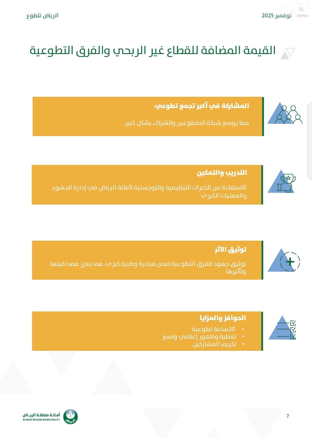 ضمن مبادرات أمانة منطقة الرياض تحت مسمى “الرياض تتطوع” تعتزم بلدية المجمعة إقامة مبادرة تطوعية وتهدف هذه المبادرة إلى تنفيذ عمل تطوعي واسع يضم 20,000 متطوع في يوم واحد، بما يحقق أثرًا بيئيًا واجتماعيًا مستدامًا في مختلف مواقع المنطقة.وتهدف المبادرة تشمل: تعزيز المشاركة المجتمعية وتنمية روح التطوع. وتحسين المشهد الحضري ورفع جودة الحياة و المساهمة في حماية البيئة واستدامة الموارد و دعم الجهات الحكومية والخاصة في مبادراتها التطوعية المشتركة اضافة إلى تعزيز الشراكات المجتمعية وتحقيق أثر ملموس في وقت قياسي.